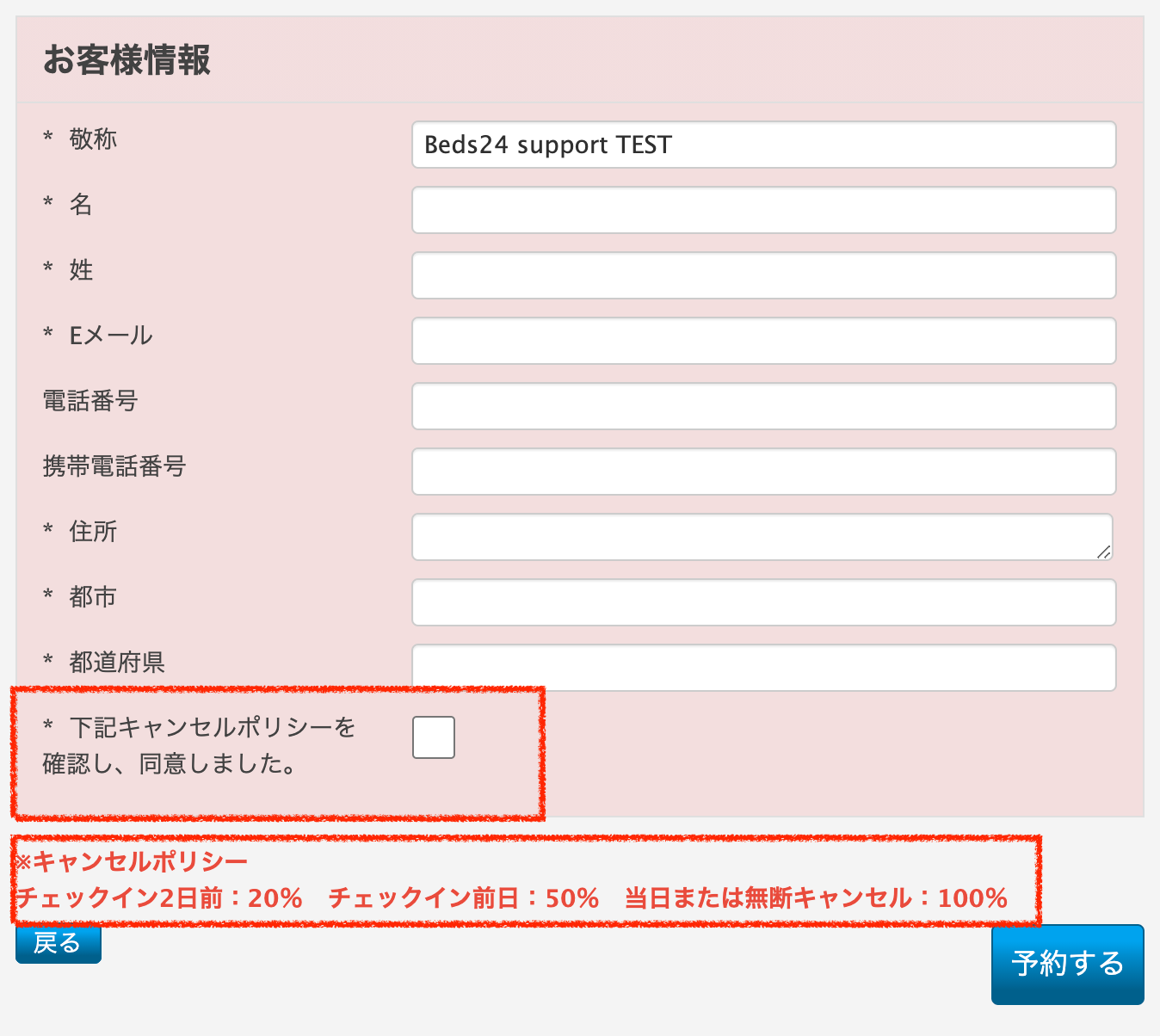 (1)予約フォームにチェックボックスとキャンセルポリシーを表示させる方法