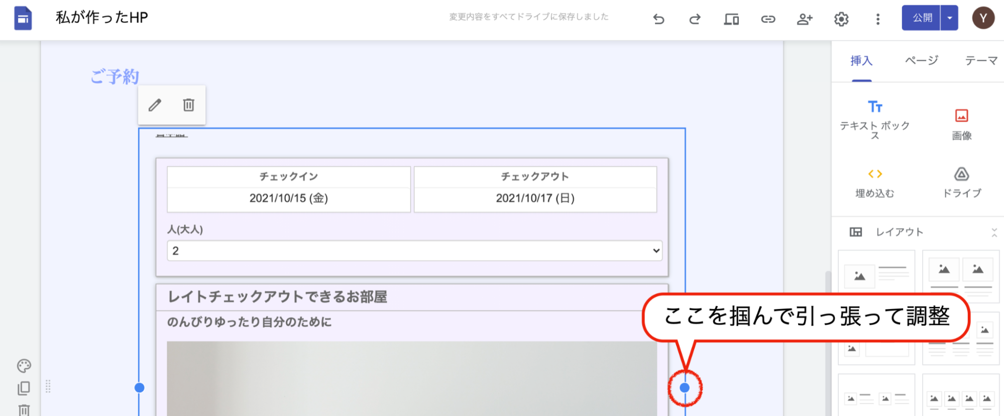 ⑤Google サイトでレイアウトを調整
