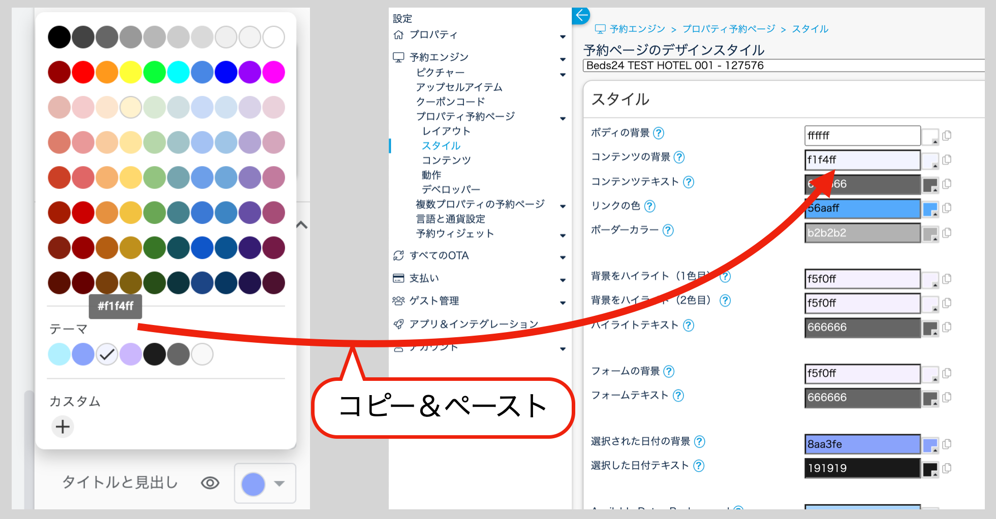 ⑥Googleサイトの色を、Beds24予約エンジンの背景色などにコピペ