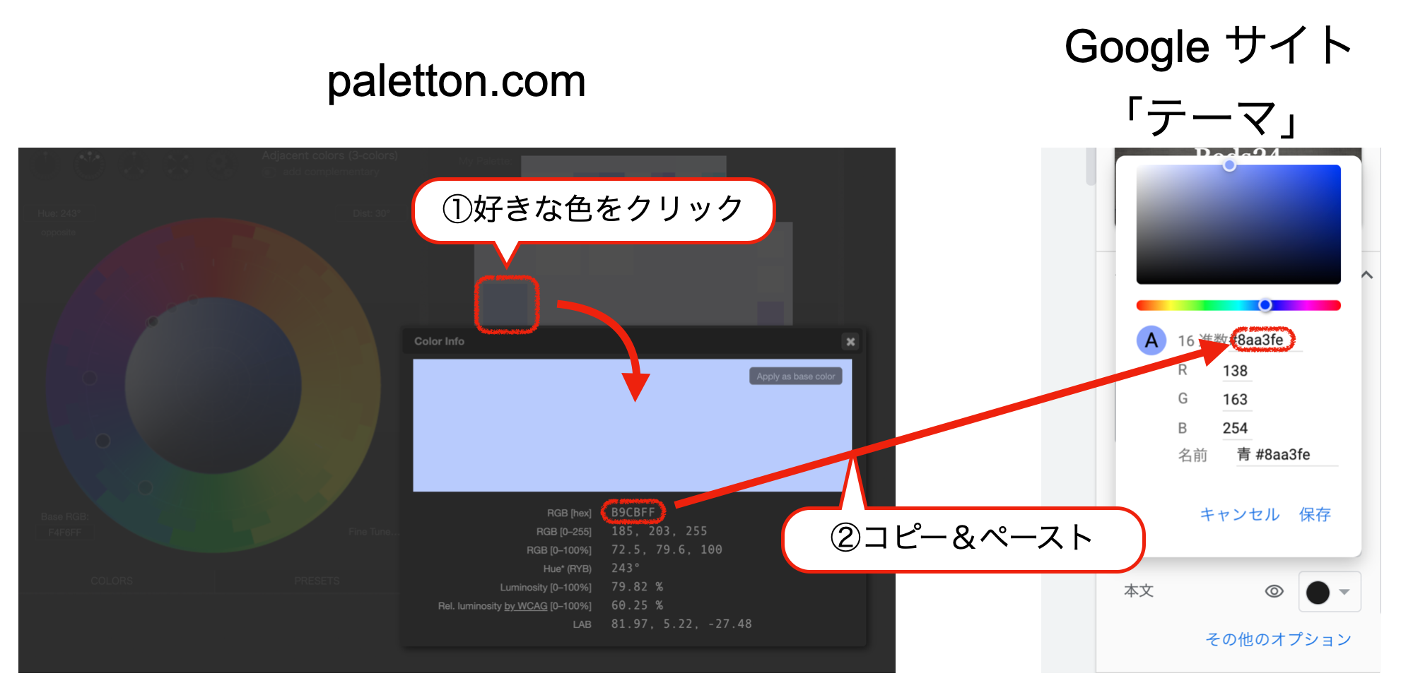 ③paletton.comから色のコードをコピペして配色を調整