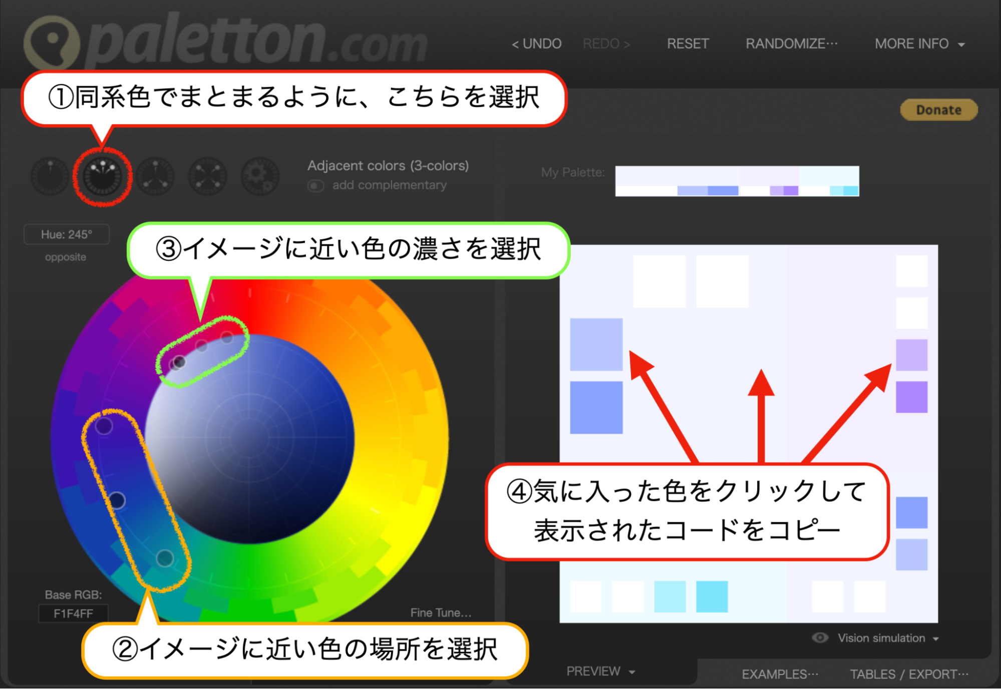 ②paletton.comで配色パターンを調整(所要時間:10分)
