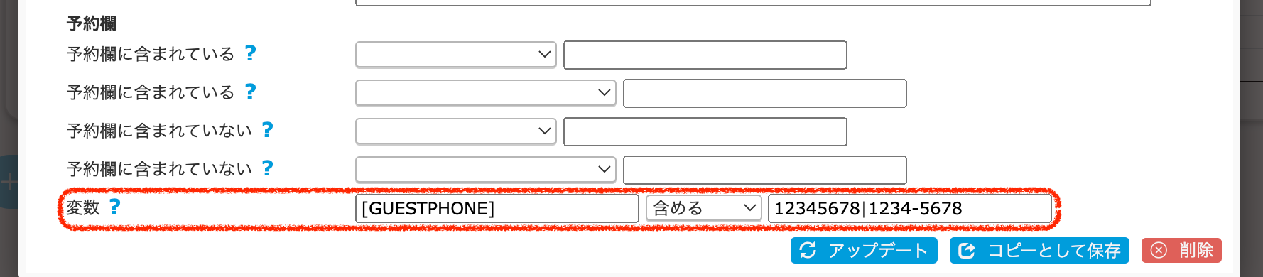 *問題のあるゲストが増えた場合は、『|』で区切って電話番号を追記