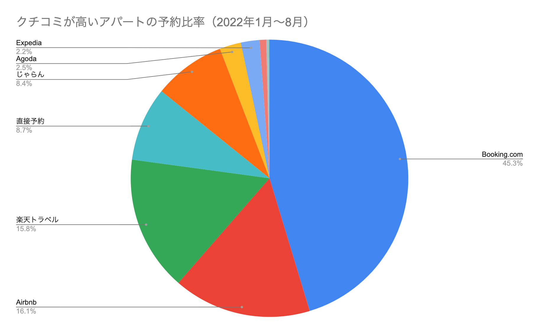 Booking.com、Airbnb、楽天トラベルで全体の77.2%を占めています。