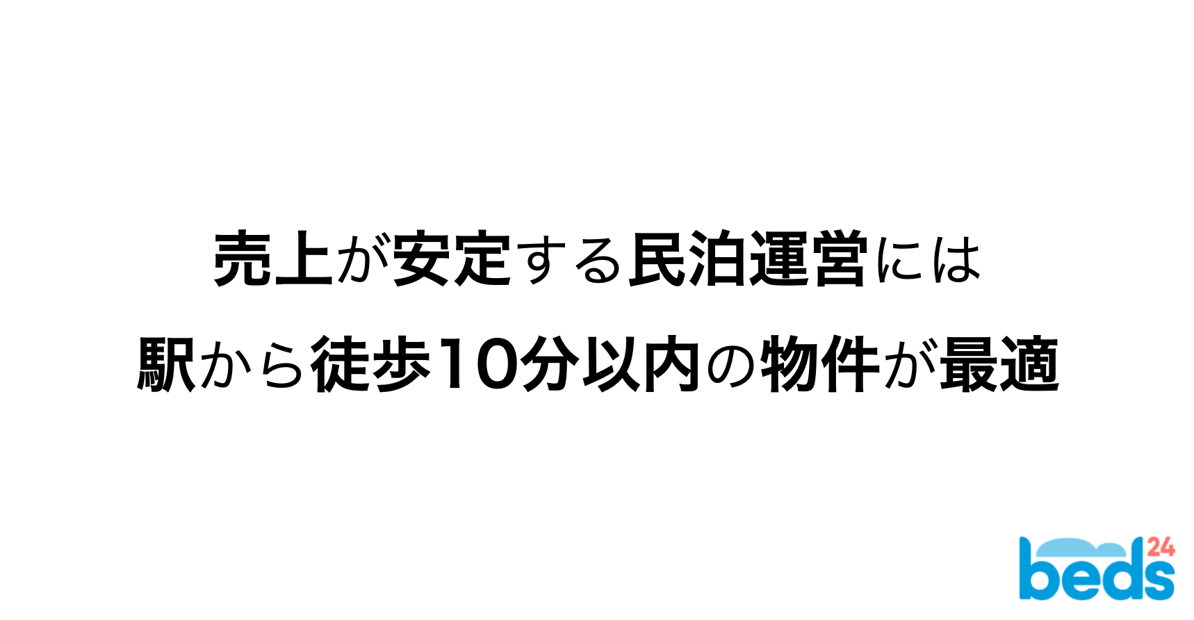 民泊を運営するには、駅から徒歩10分以内の物件がオススメです。