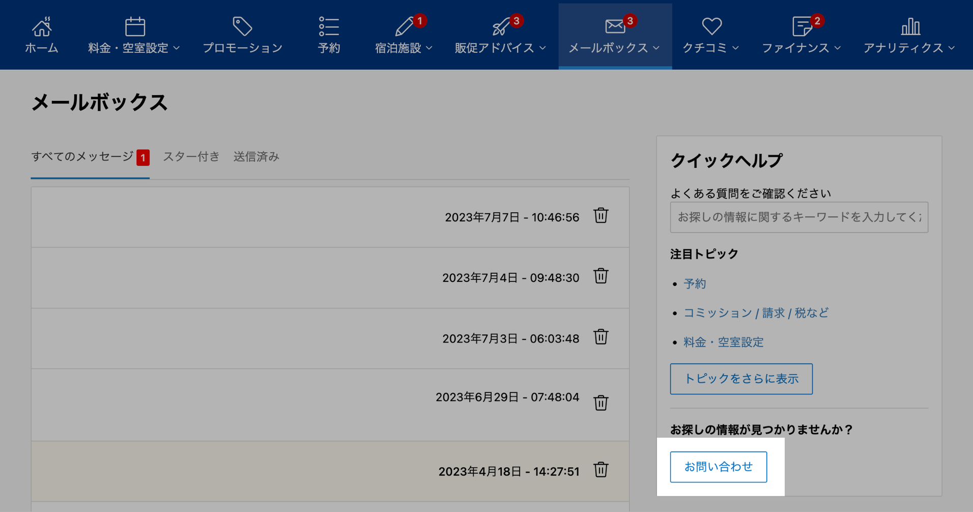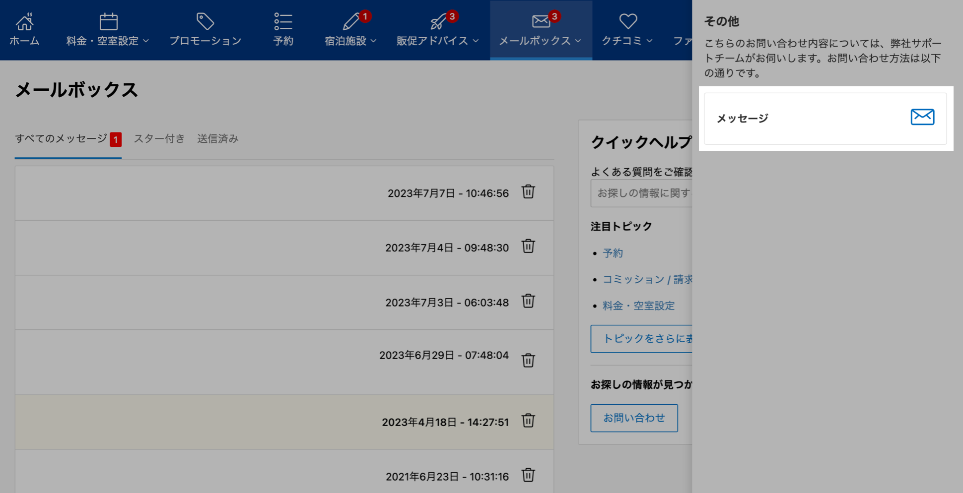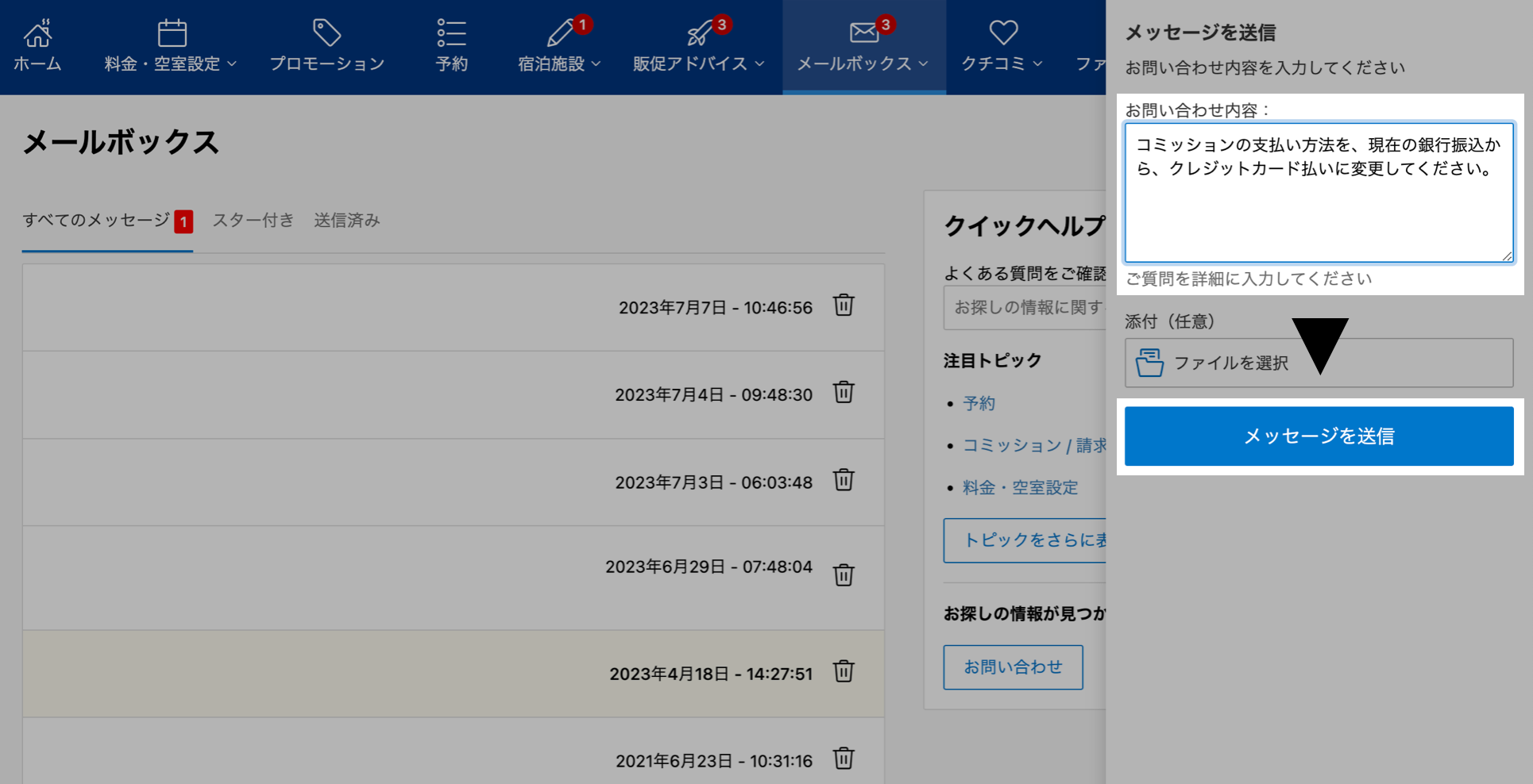 ①メールボックス > Booking.comからのメッセージをひらく