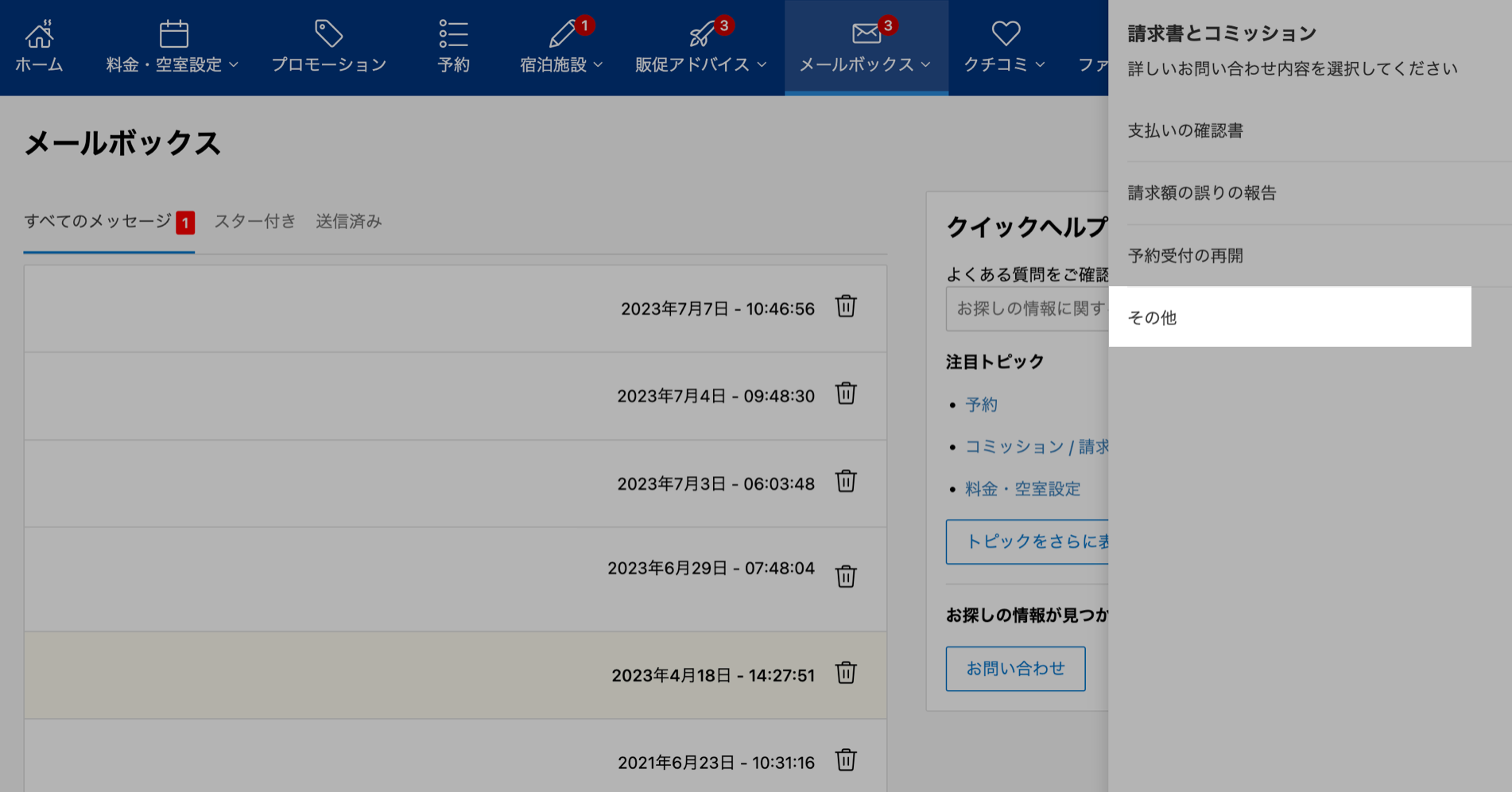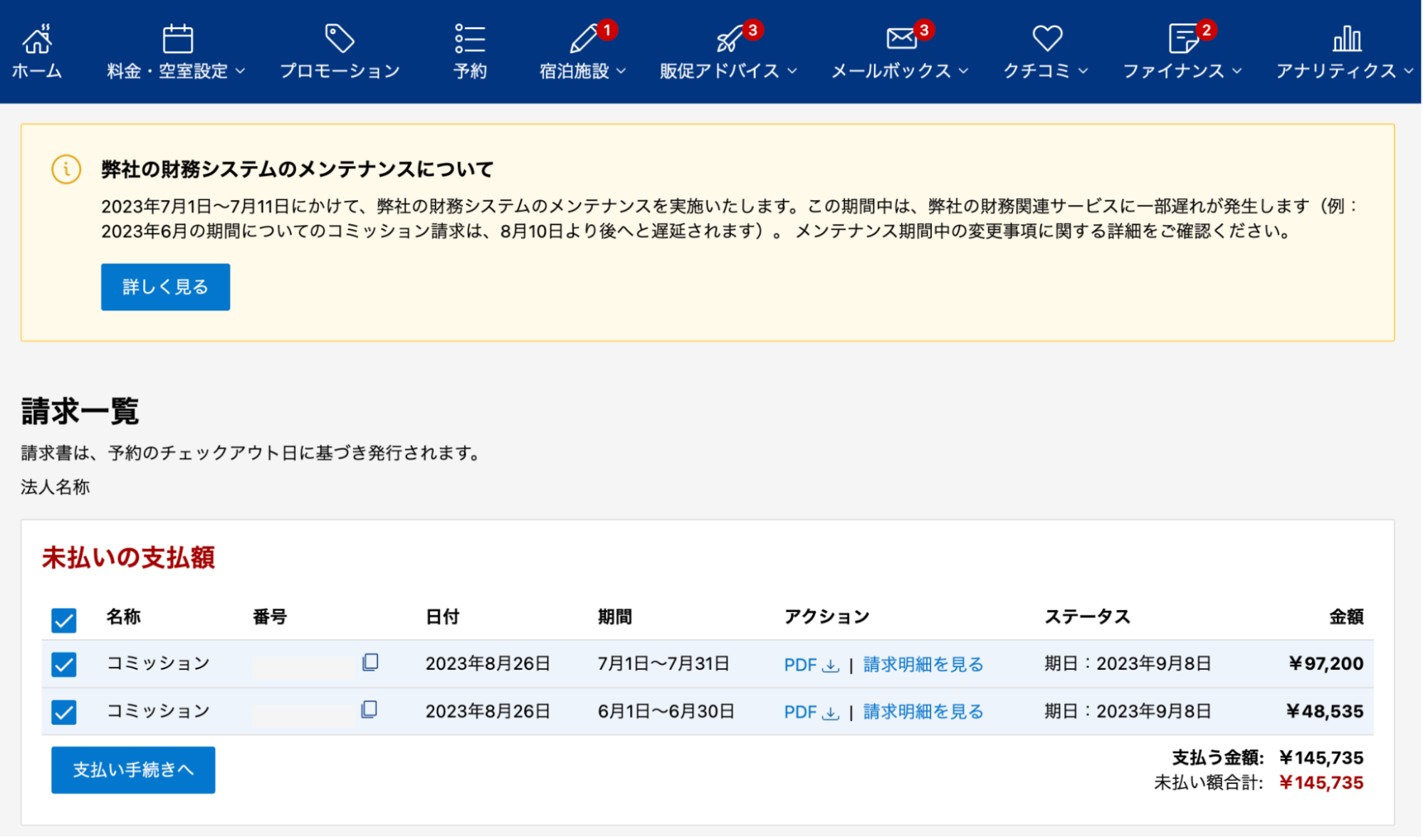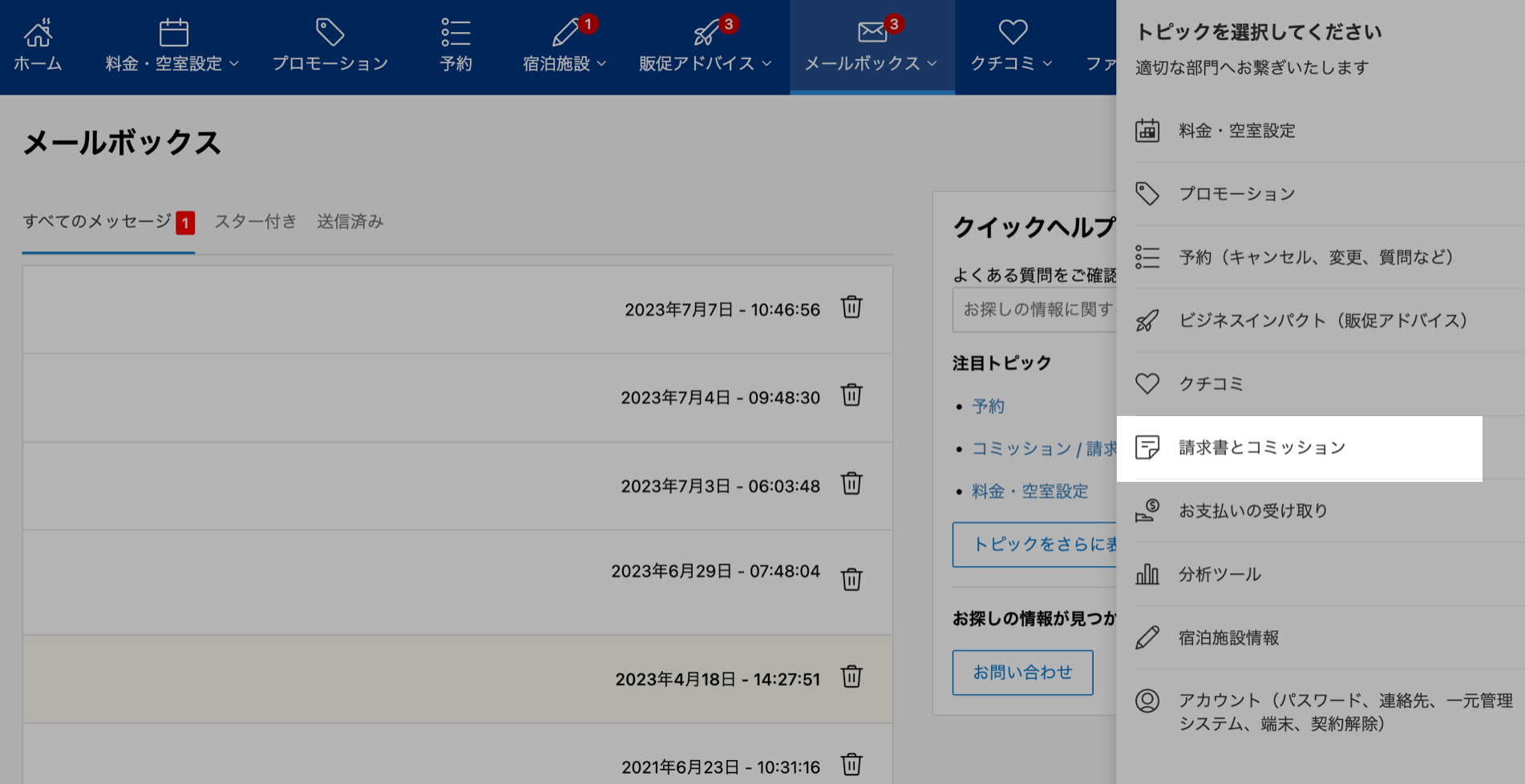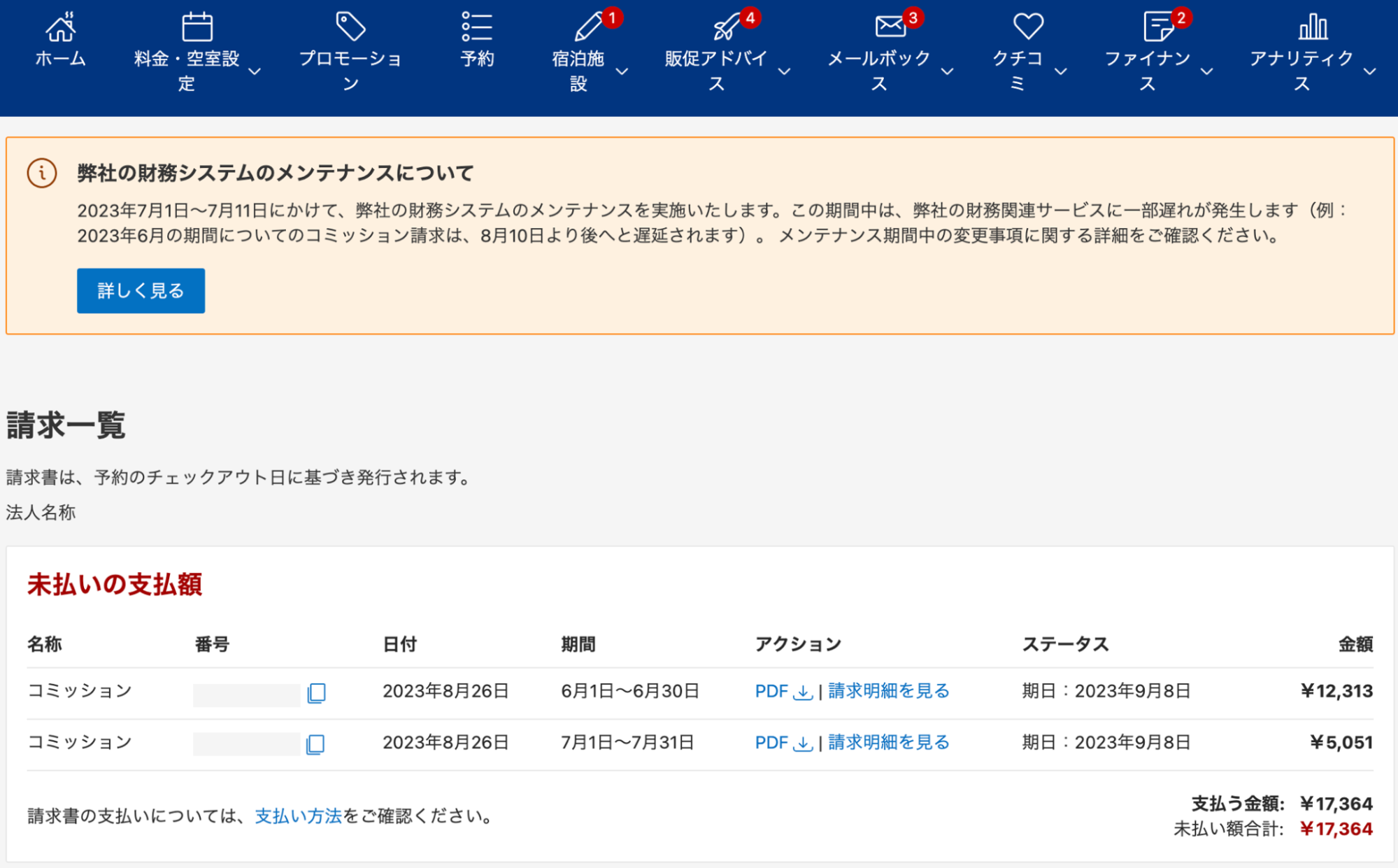 Booking.comから宿に届く、コミッション*の請求。
