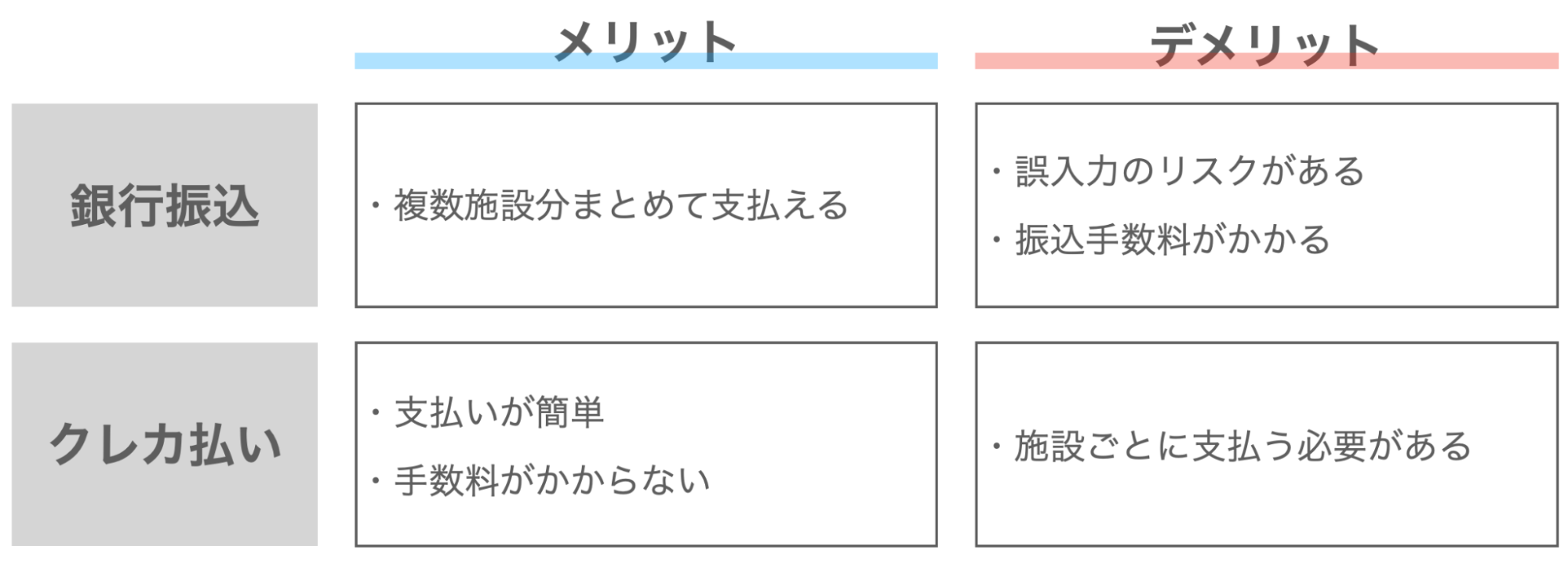 銀行振込、クレカ払いにはそれぞれメリットとデメリットがあります。