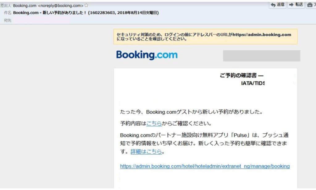 Booking.comの確認メールは、Beds24とつなぐと、送信されなくなります。 執筆者 長坂 創太 | 2018/05/16 | 未分類 Beds24とつなぐと、以下のような確認メールがBooking.comから届かなくなります。 代わりにBeds24から予約確認のメールが届きます。