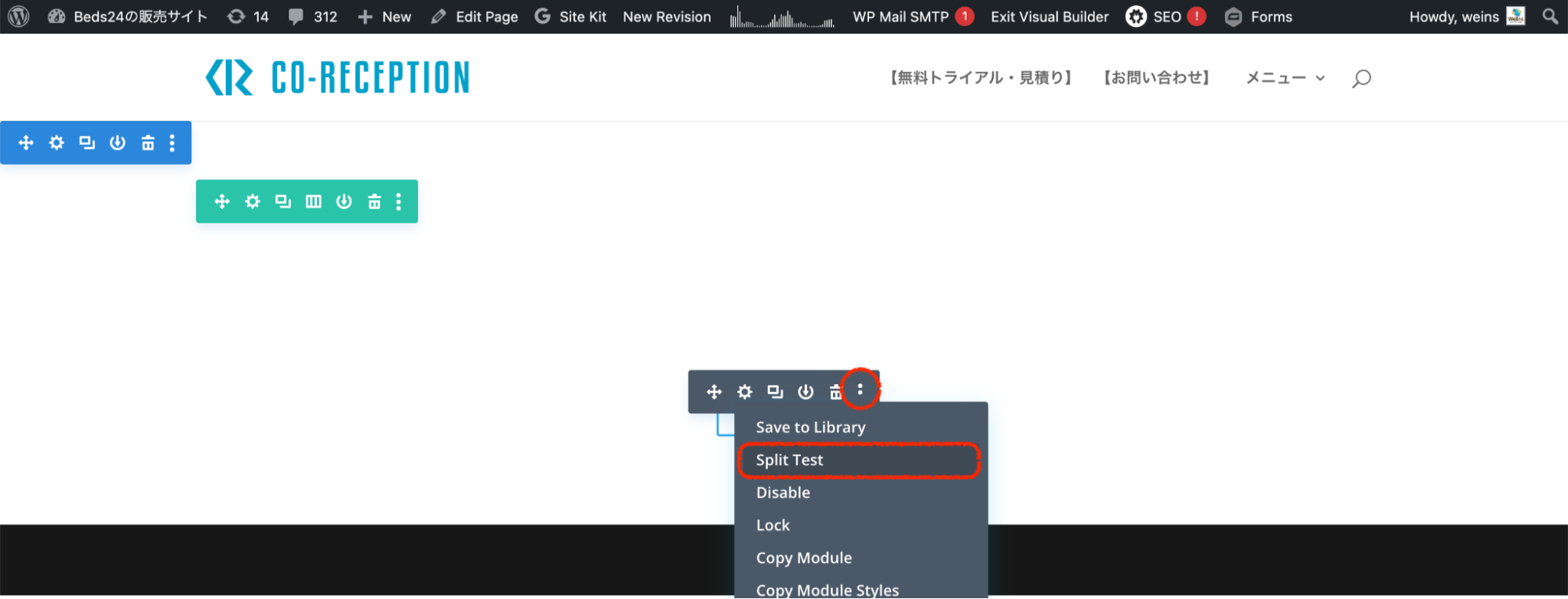 ②『Split Test』をクリックした後に、予約ボタンをクリック