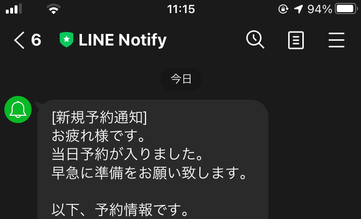 - 当日予約通知はメールではなくLINEに送る。