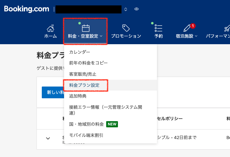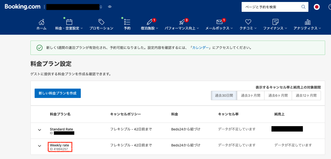 Booking,com画面で料金プランのレートIDを作成方法