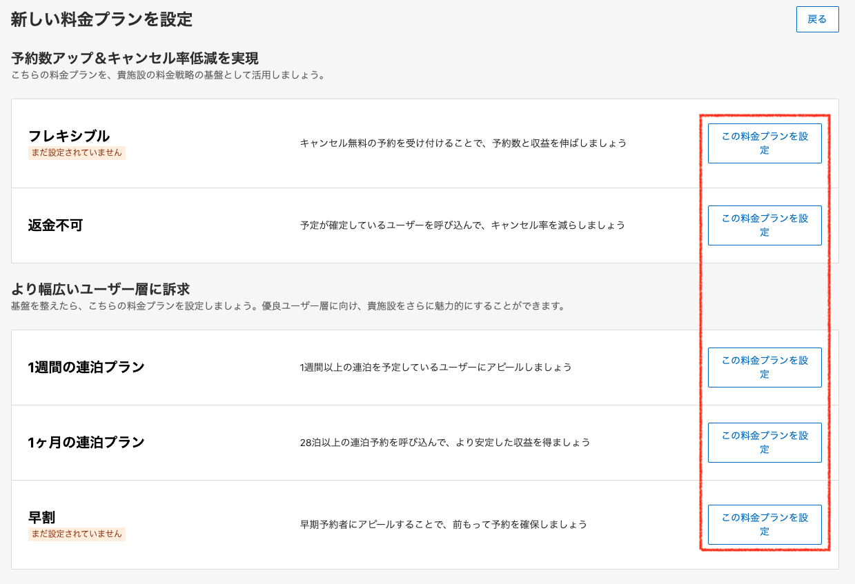 作成したい料金プランの「この料金プランを設定」をクリックします。