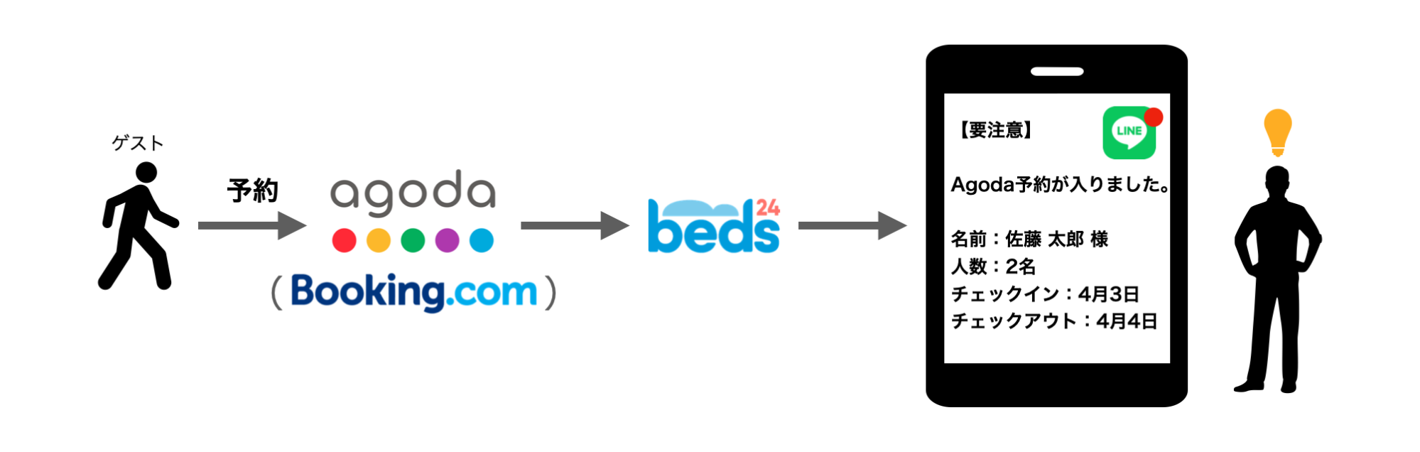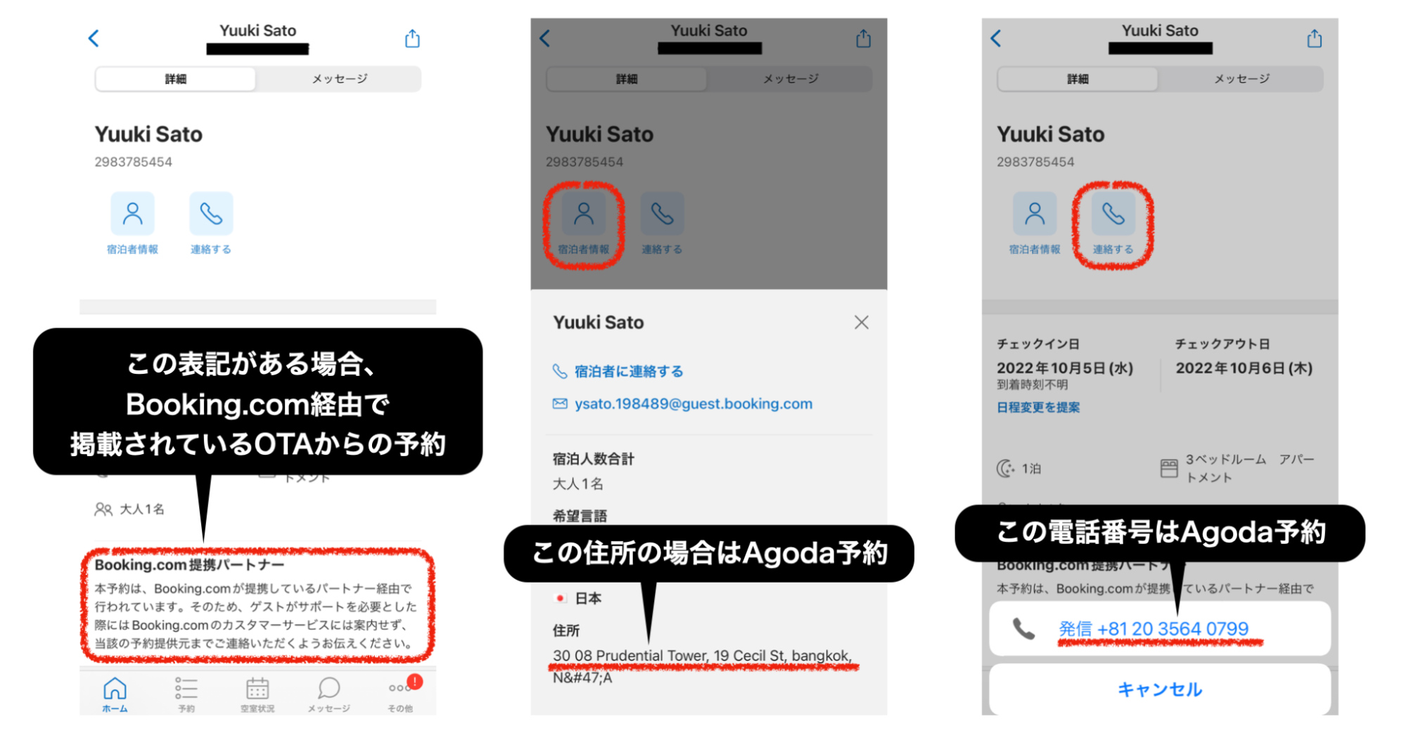 上記2点の問題により、ゲストと連絡を取り合うのは困難です。