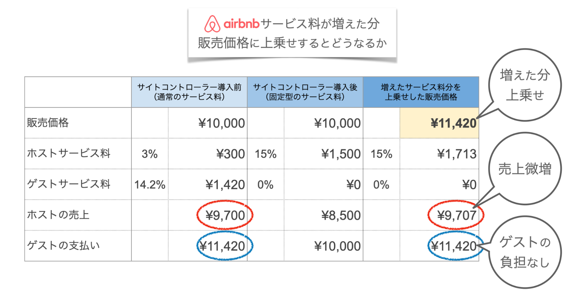 手数料分を上乗せすれば、ゲストとホスト双方の負担は変わりません。