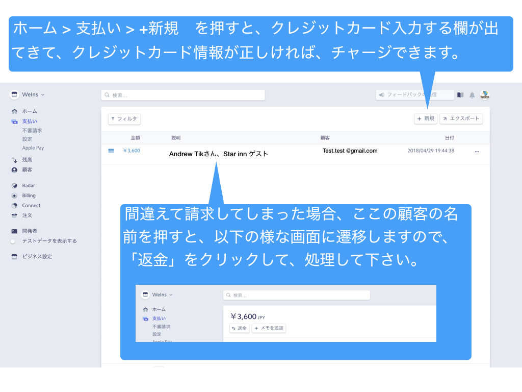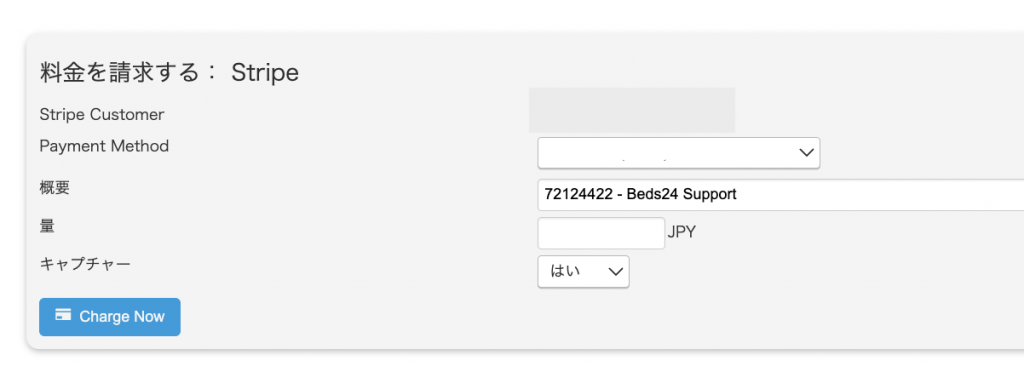 ※Stripe管理画面から直接決済も可能ですが、決済履歴がBeds24へは反映されません。