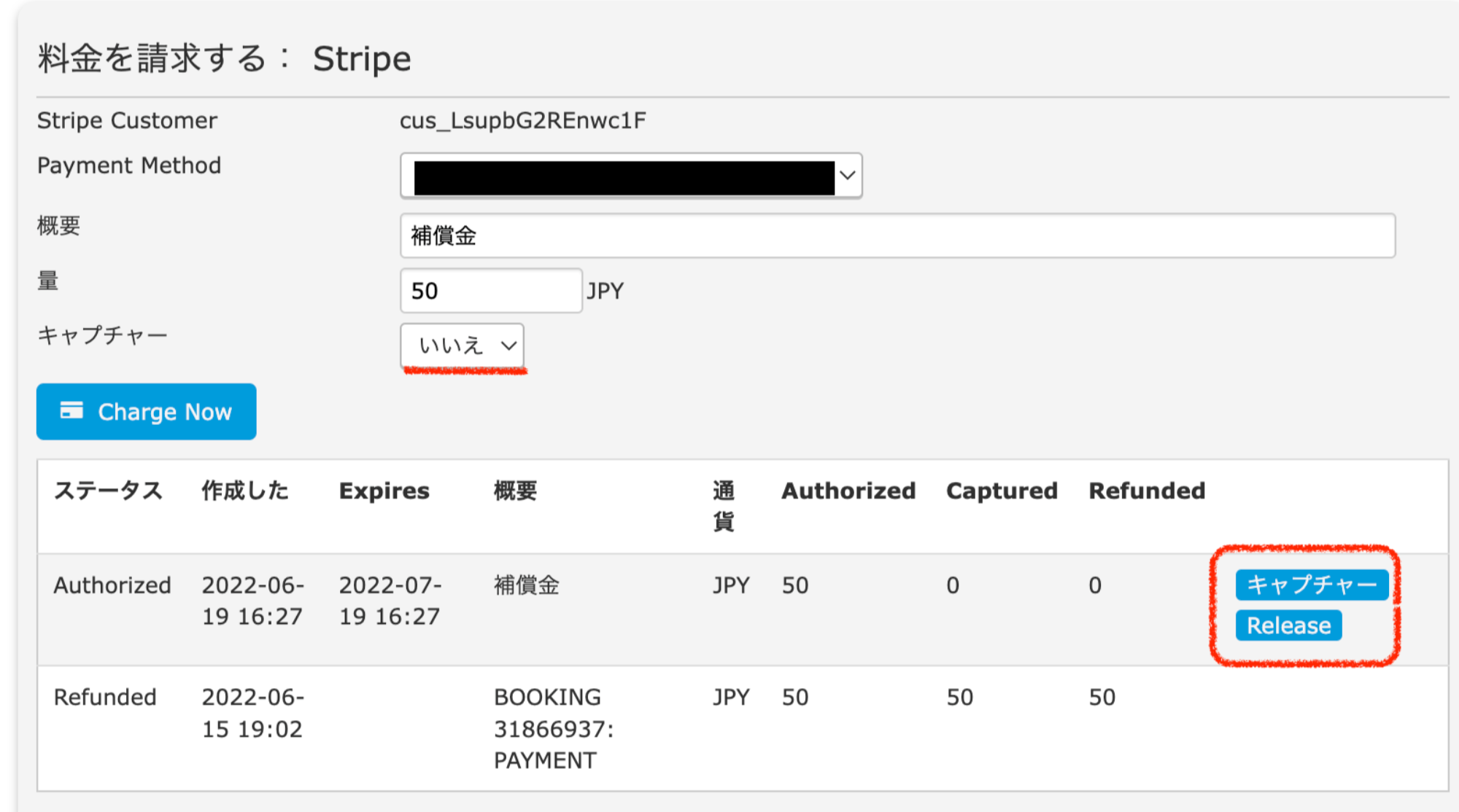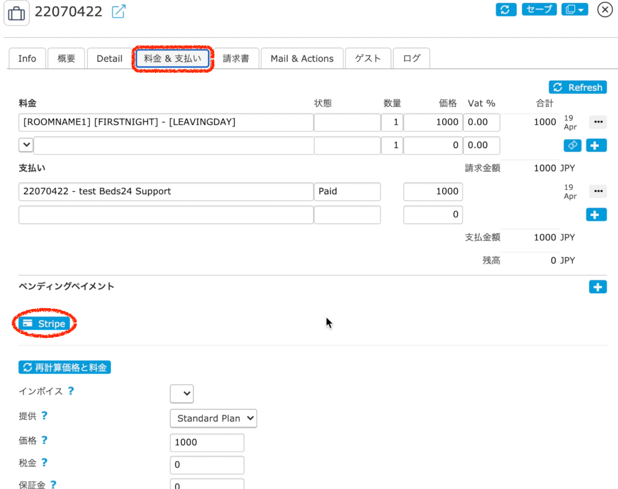 ※Stripe管理画面から直接決済も可能ですが、決済履歴がBeds24へは反映されません。