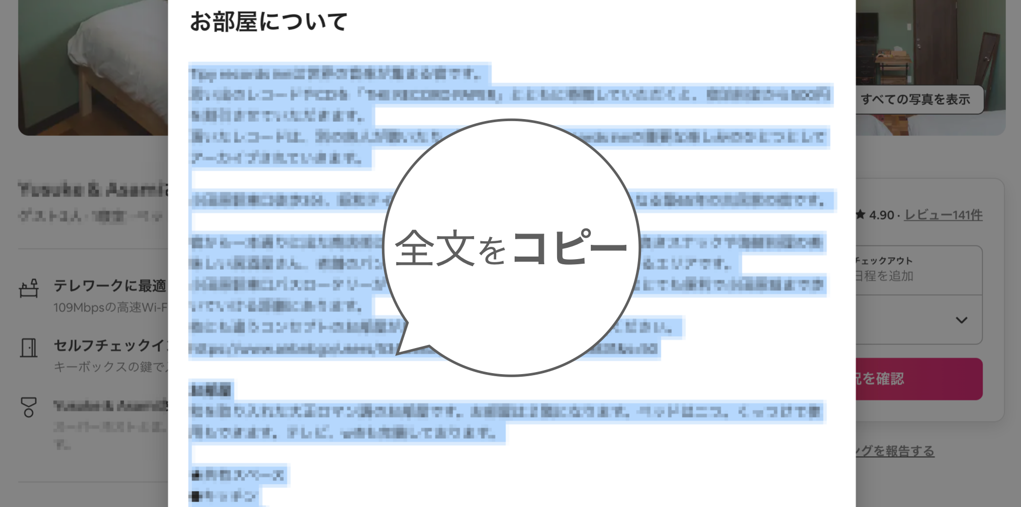①Airbnbでリスティングの、『お部屋について』に書かれた内容をコピー