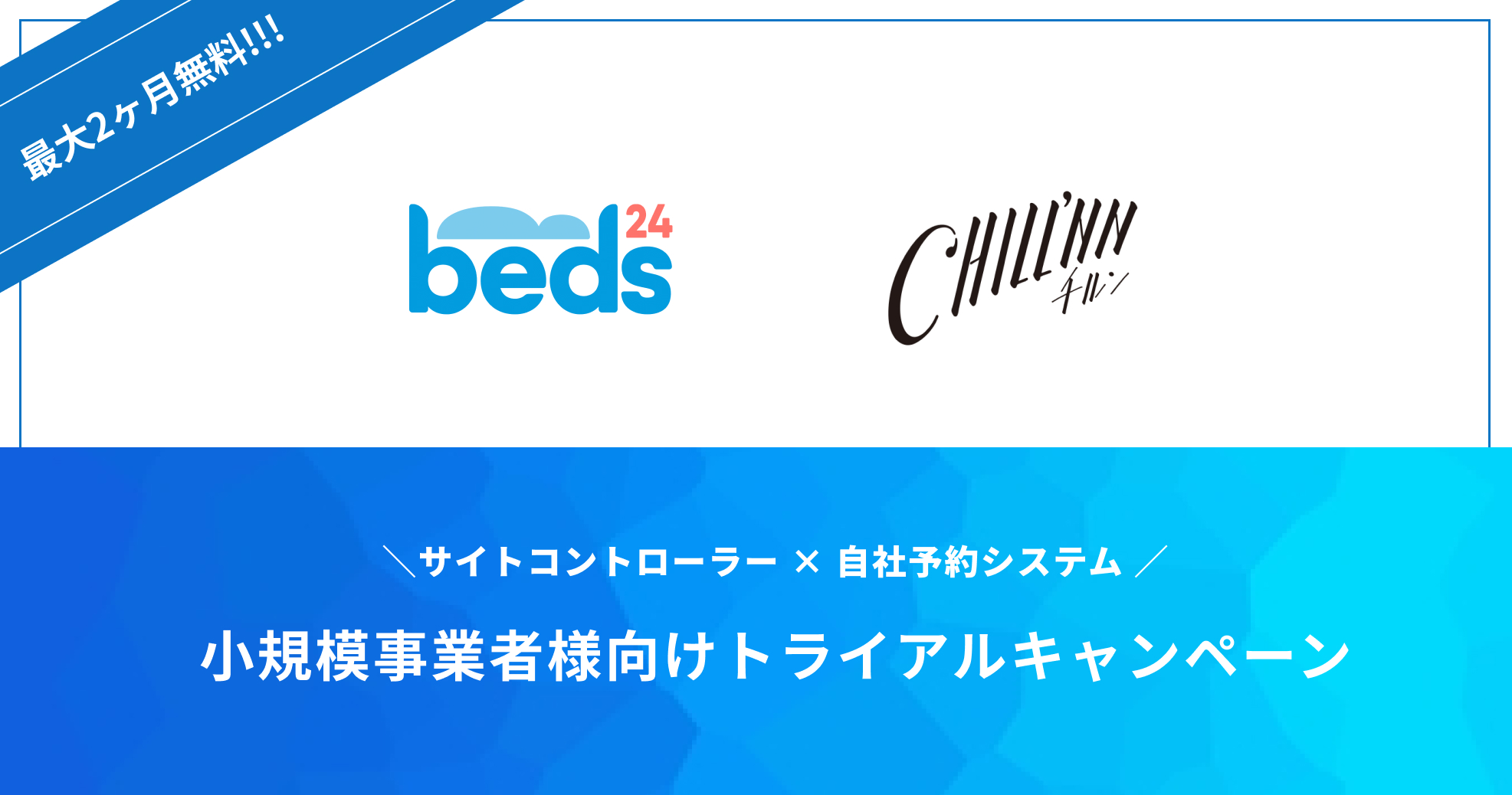 Beds24ユーザー様限定で、CHILLNNの利用料金が2ヶ月無料になります。