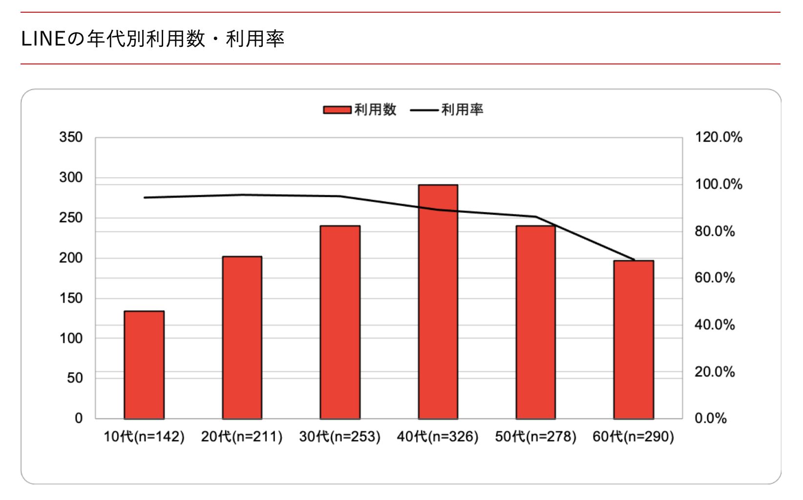 LINEの利用率は、全世代で86.9%もあります。