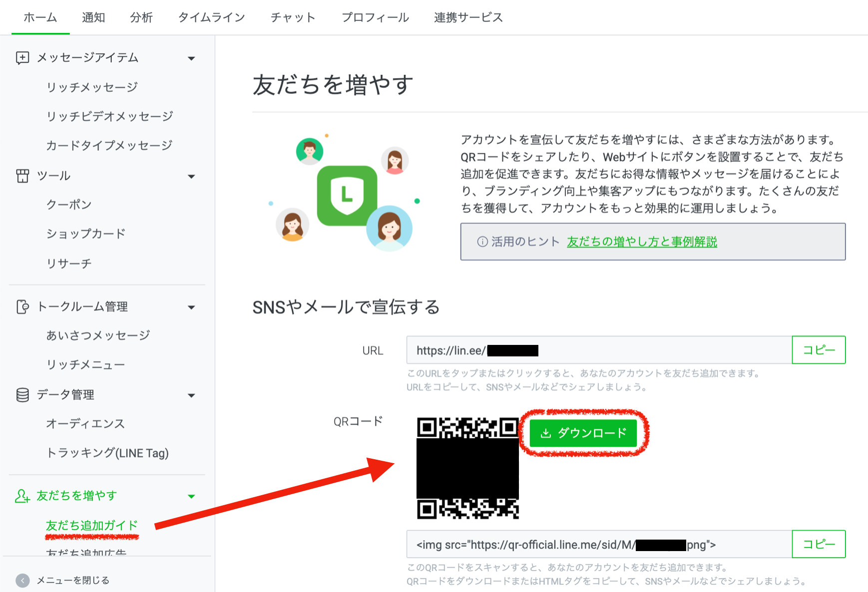 LINE Official Account ManagerからQRコードを保存してください。