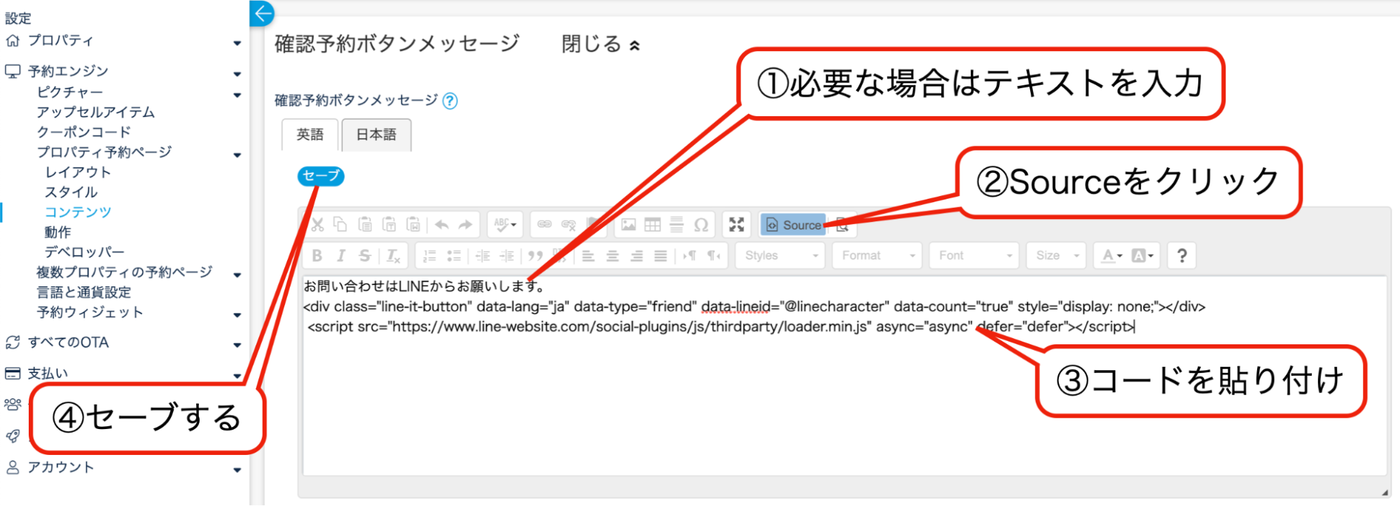 Beds24の以下のページでコードを貼り付けましょう。