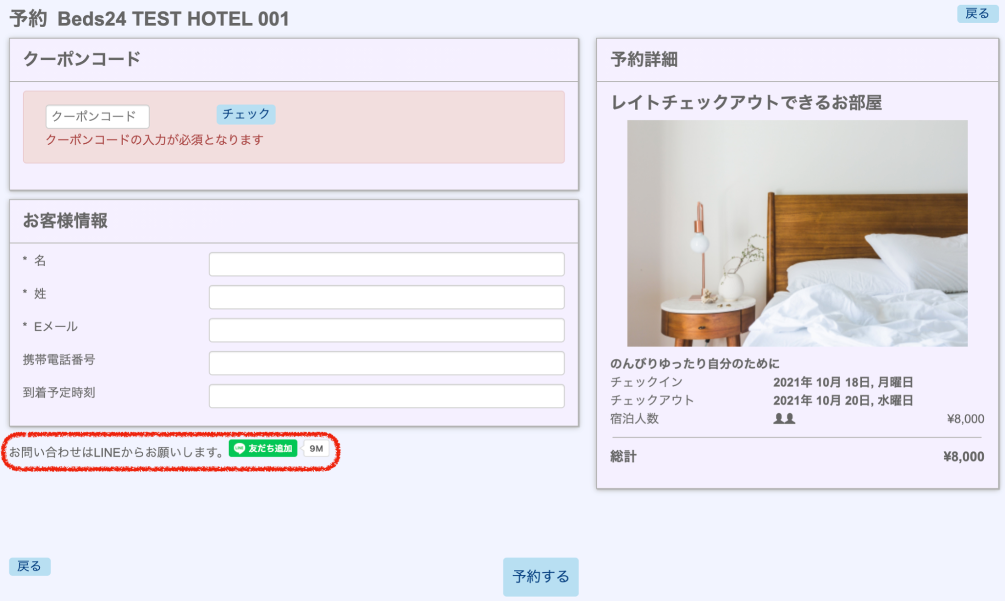 設定後、予約画面では以下のように表示されます。