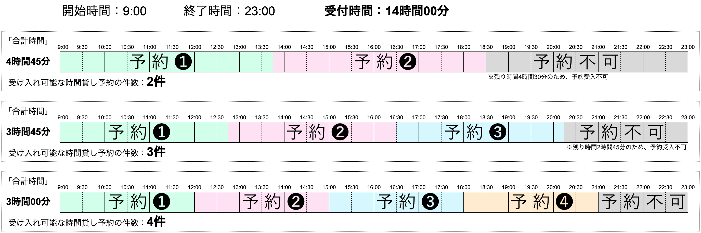 ※合計時間ごとに受け入れ可能な予約件数のイメージ