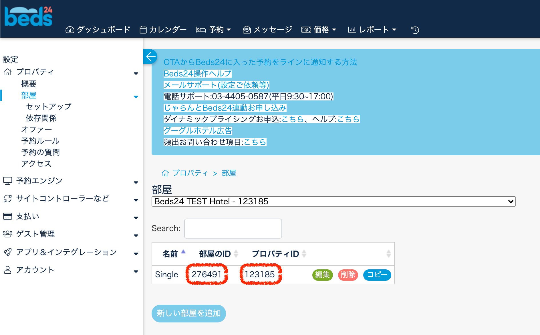 ※プロパティIDと部屋IDは設定 > プロパティ > 部屋のページで確認してください。