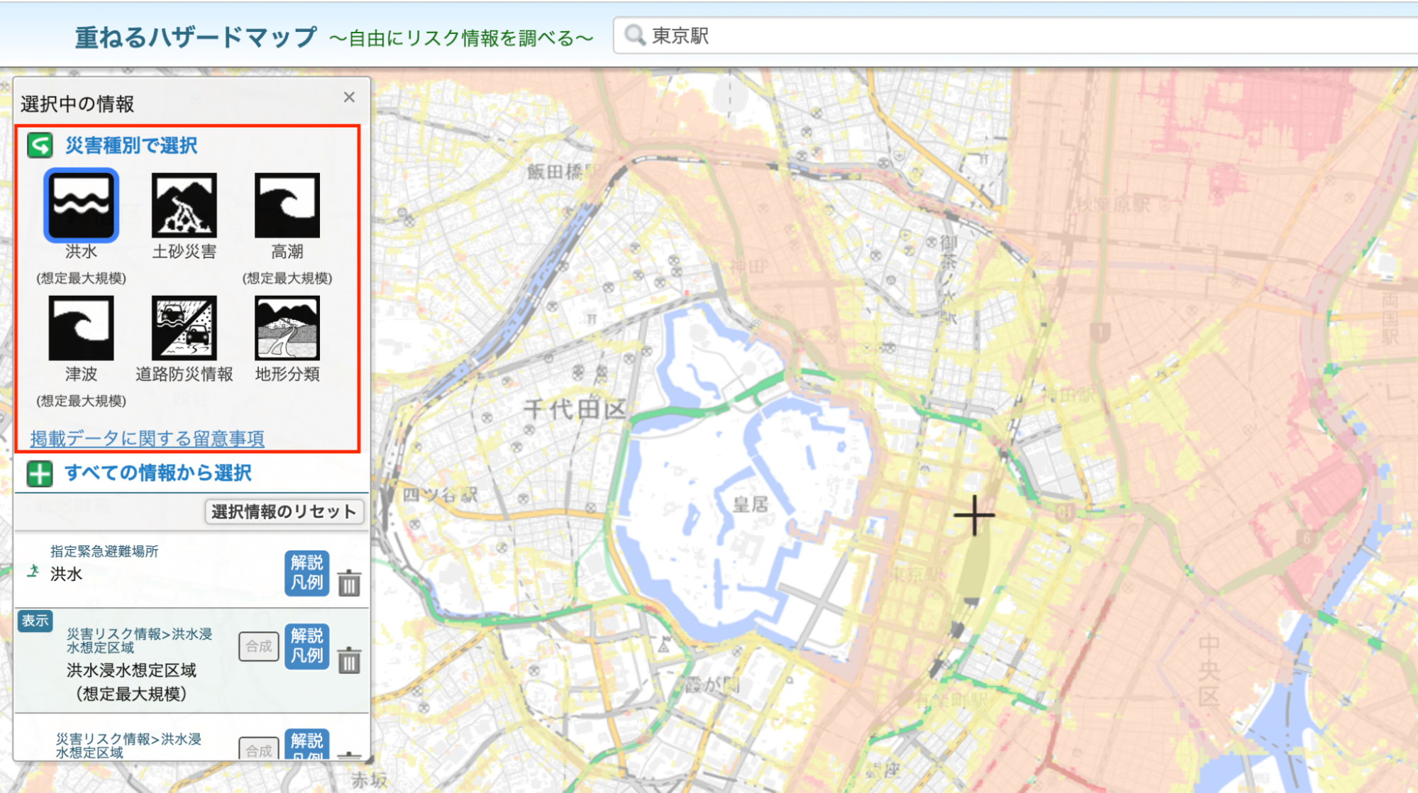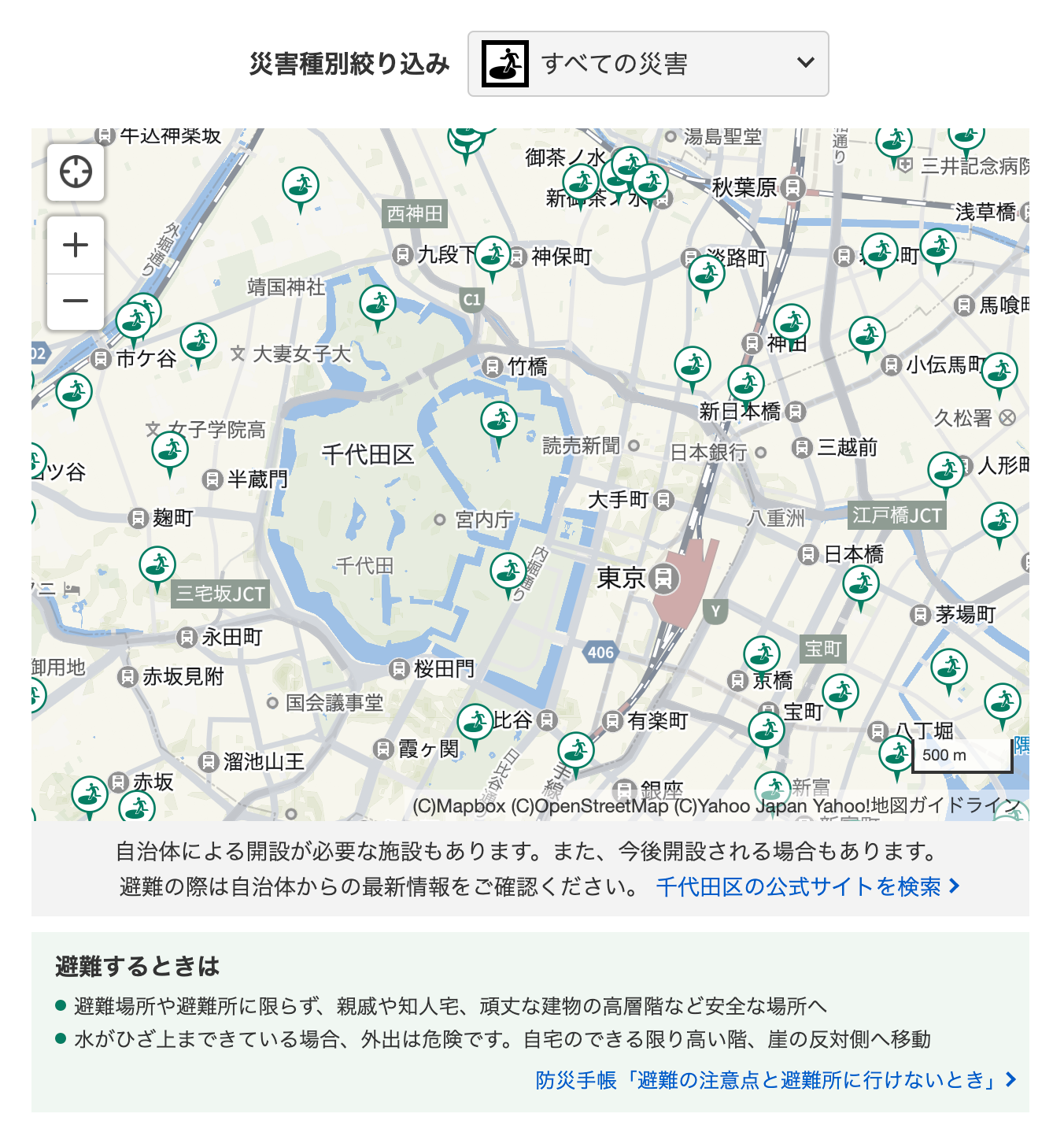 例えば、皇居の場合、地震以外の災害の避難先として推奨されていません。