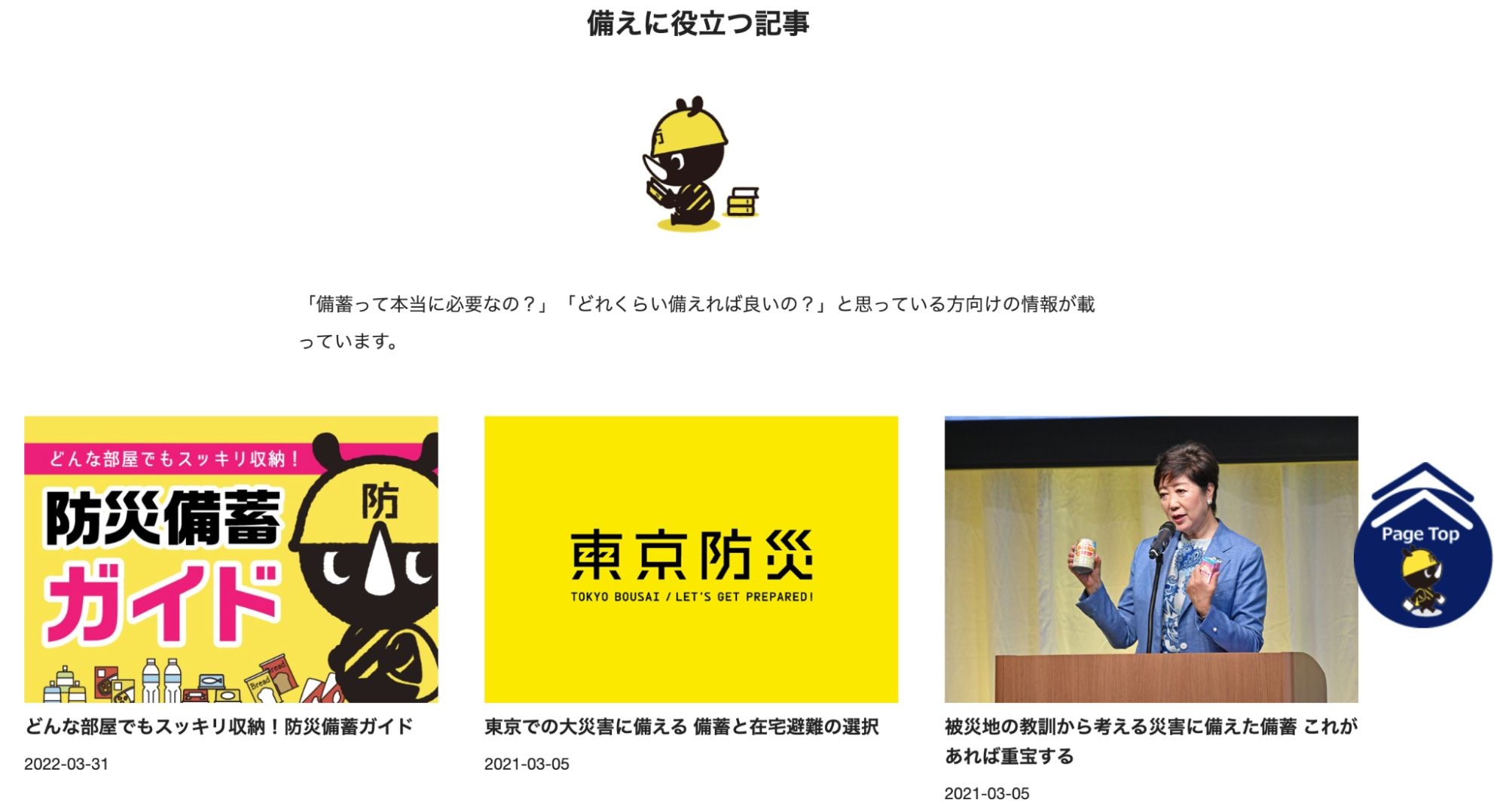 また、防災についてまとめている記事がサイト内に掲載されています。