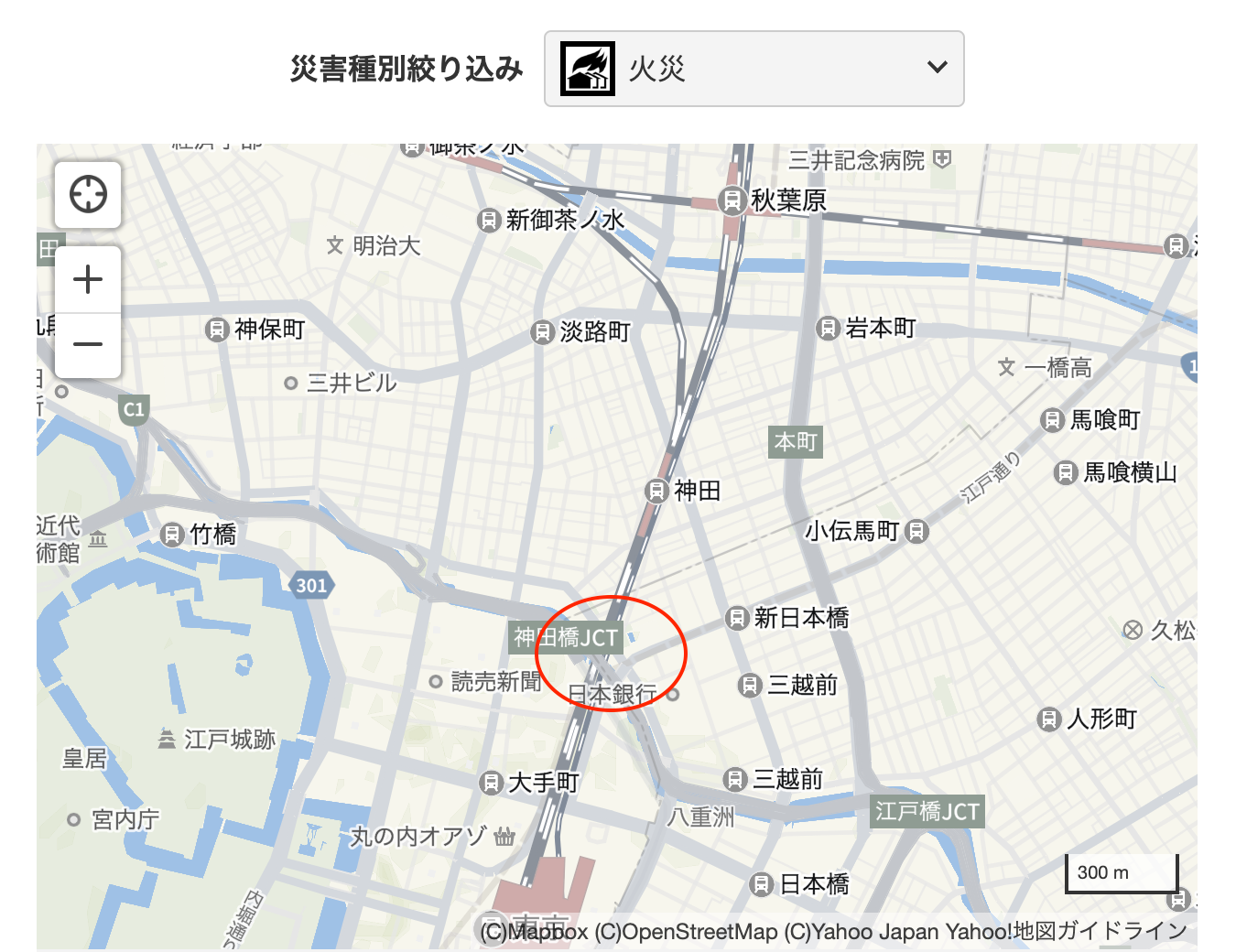 さらに、地図上で色をクリックすると、音声でも危険度を教えてくれます。