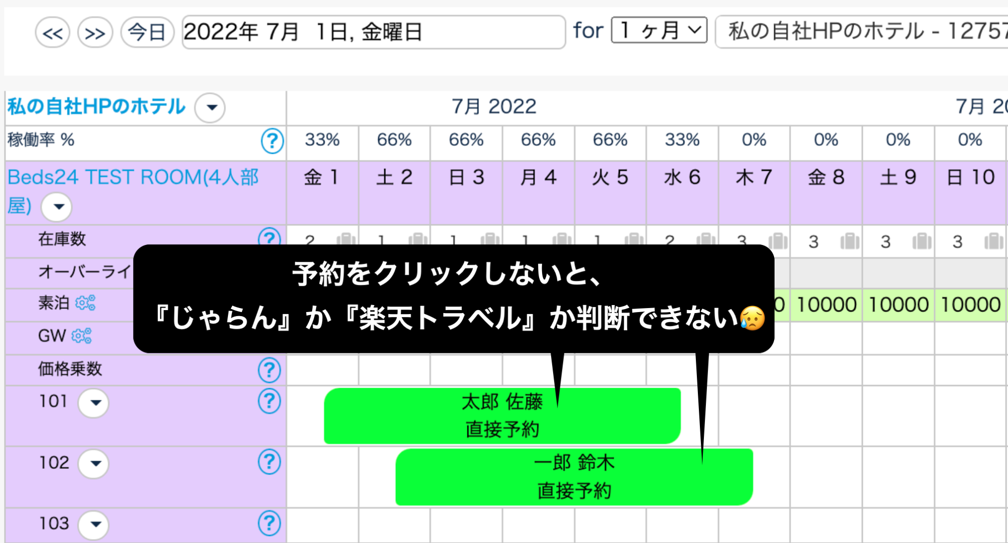 しかし、カレンダーで国内OTA名を表示させることができませんでした。