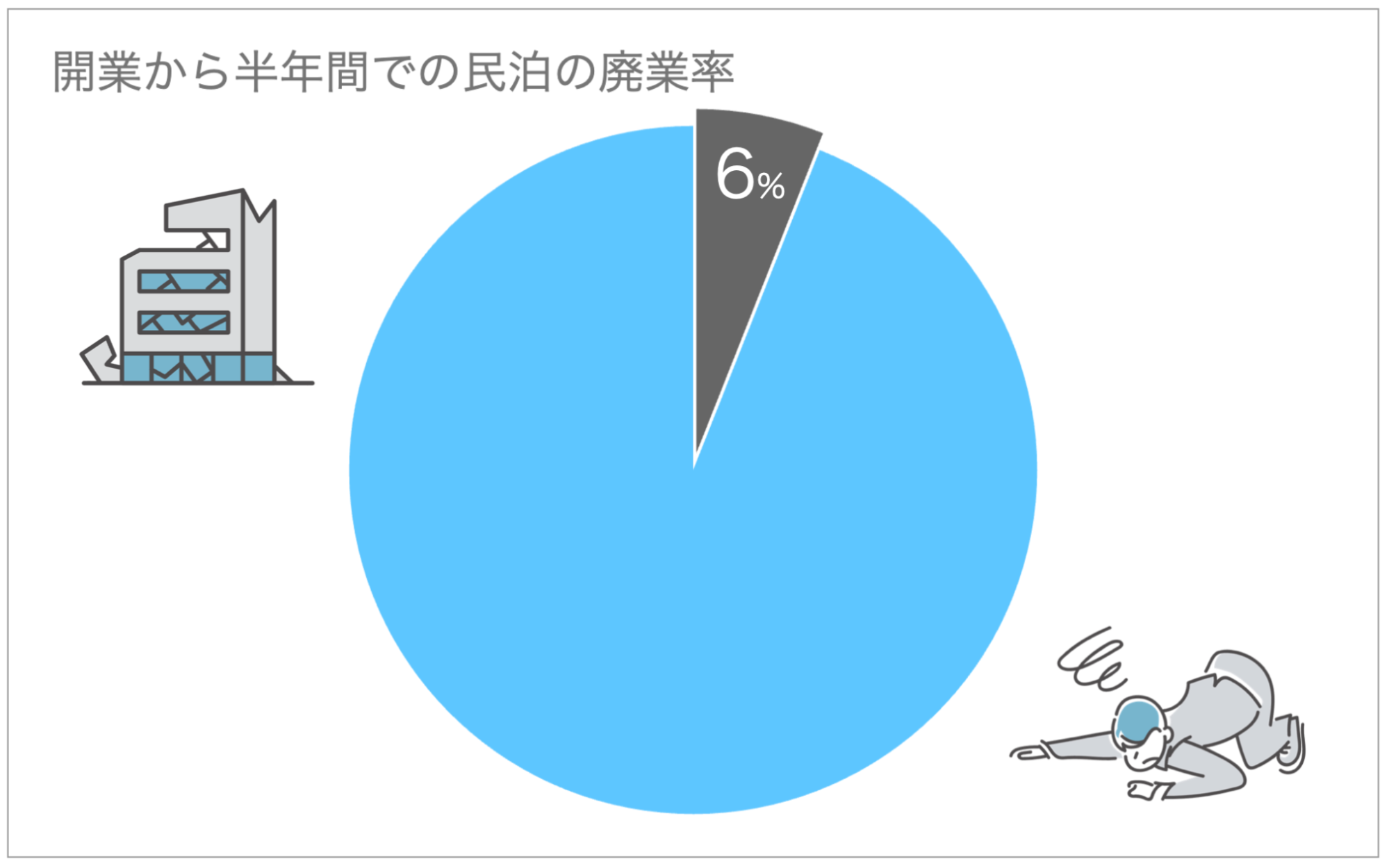民泊の開業から、半年以内での廃業率は6%です。