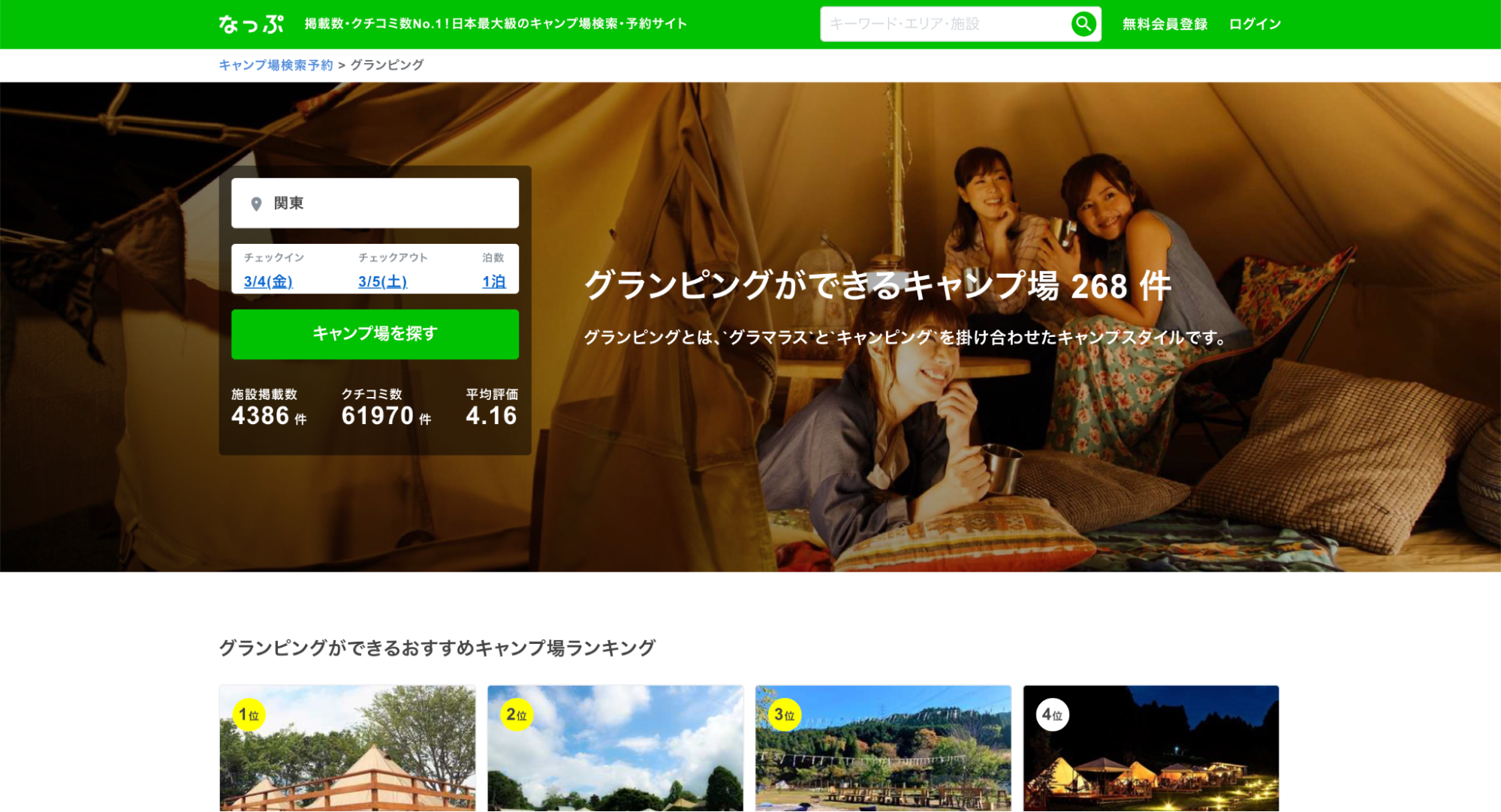 日本最大級のキャンプ場検索、予約サイトです。