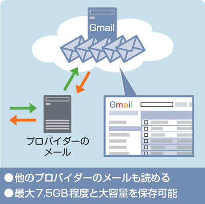 これまでメールアドレスを変更した経験のある人は、その大変さが身に染みているはず。アドレス変更の知らせを出すだけでも面倒だが、相手が古いアドレス宛にメールを送ってくることもあるため、結局は2つのアドレスを管理することになりがちだ。一方、Gmailなら、プロバイダーのメールも自動的に取り込んで1カ所にまとめられる。それまでのメール環境を、そっくりそのままGmailに統合できるのだ。