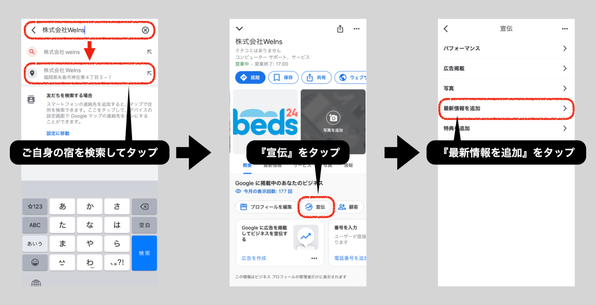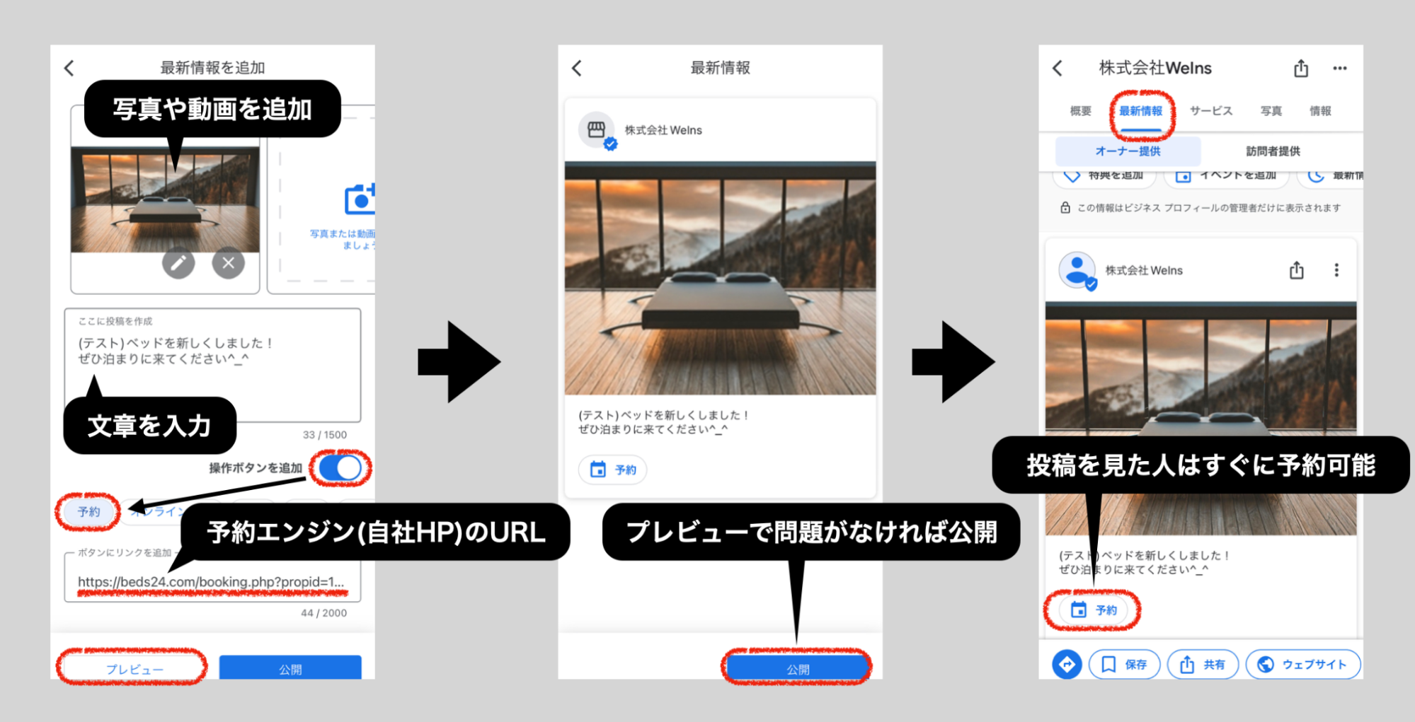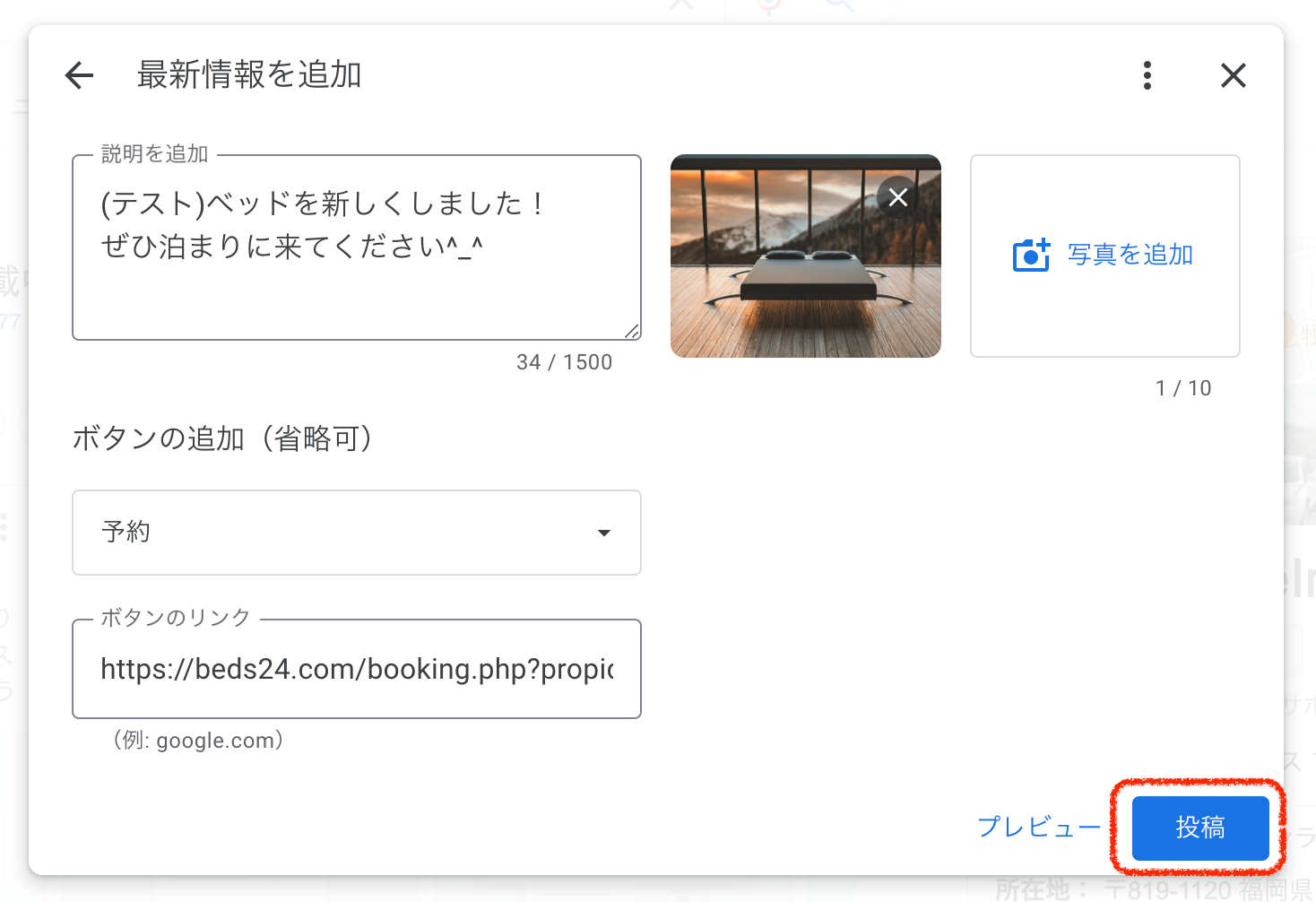 Googleマップから宿の最新情報を、日々投稿しましょう。