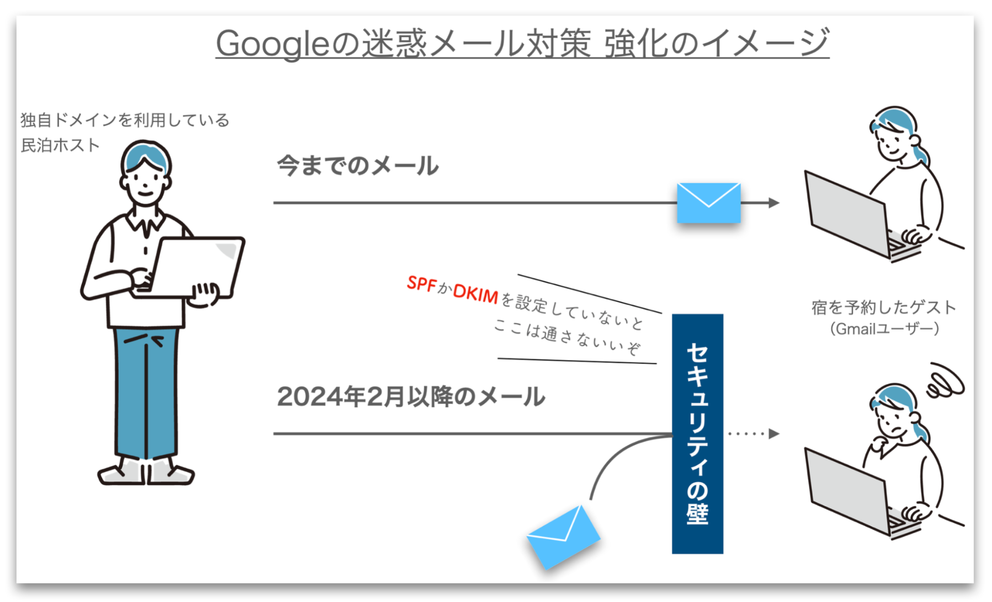 宿からGmailを使うゲストへのメールは、2024年2月から届かなくなります。