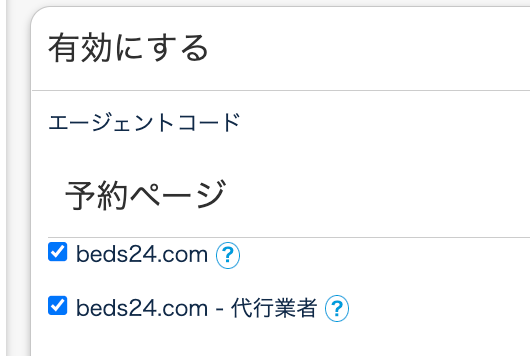 上記で作成した2つの料金欄には、予約ページの「beds24.com」2つにチェックを入れてください。