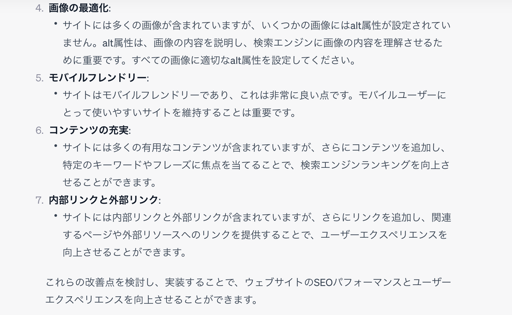 自社サイトのURLをChatGPTに貼り付けるだけでアドバイスがもらえます。