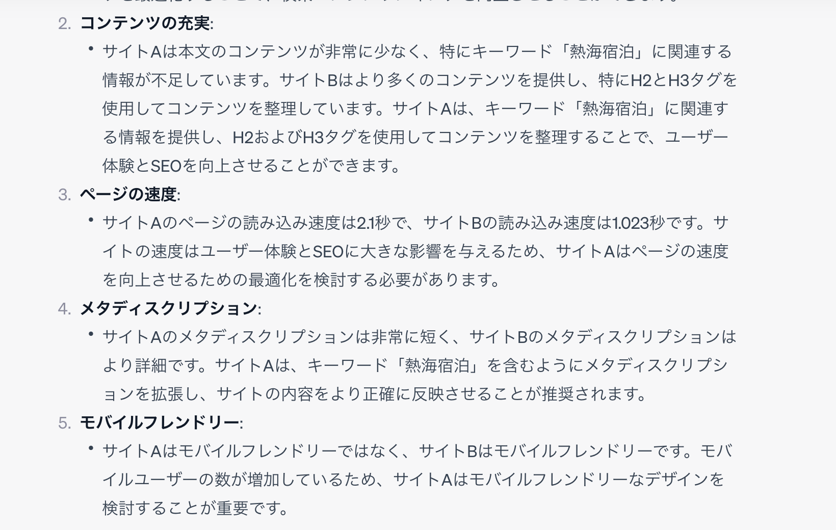 サイトの読み込み速度など改善余地がたくさん確認できますね。