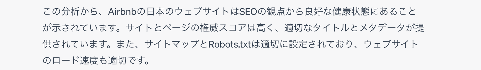 ちなみに、AirbnbはSEOが非常に優秀なため、改善点がありません。