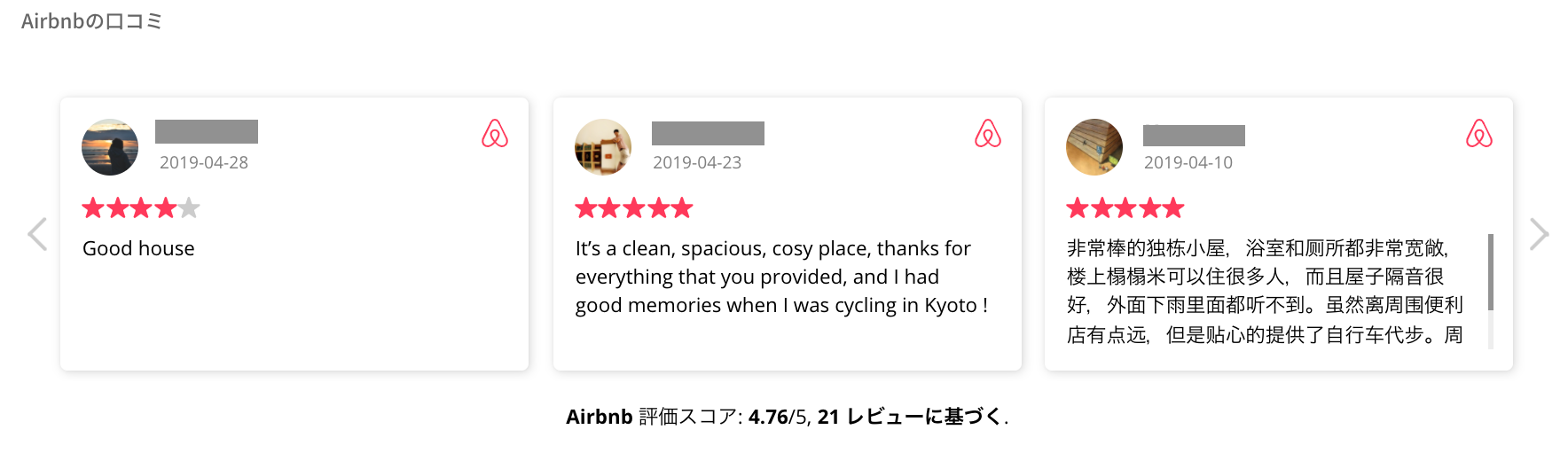 1.Airbnbの口コミを載せる