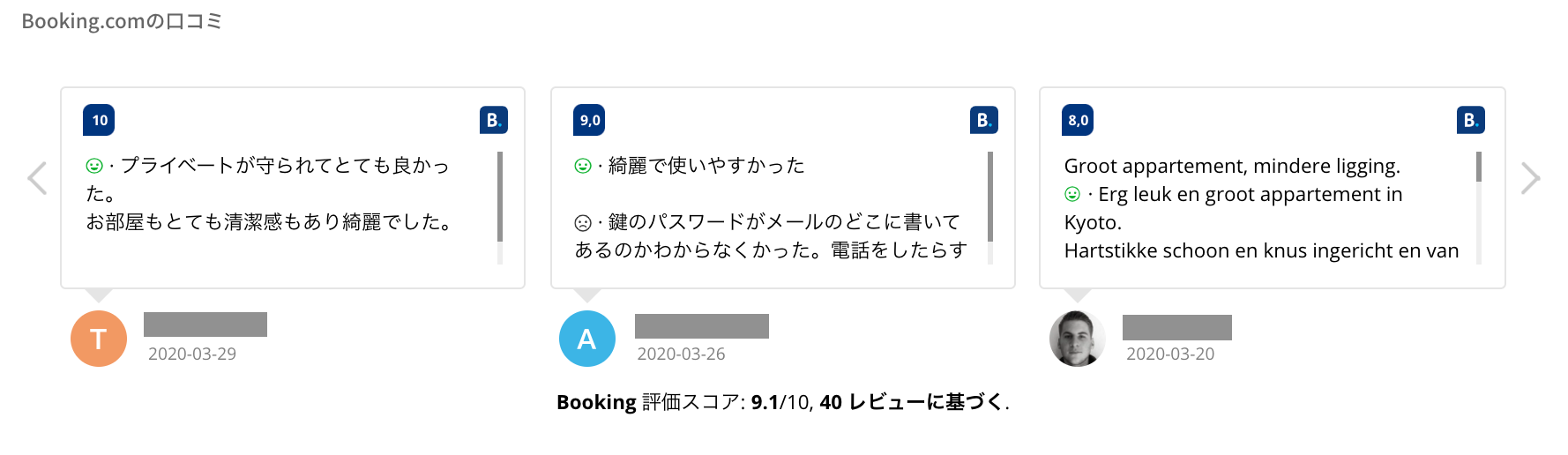 2.Booking.comの口コミを載せる