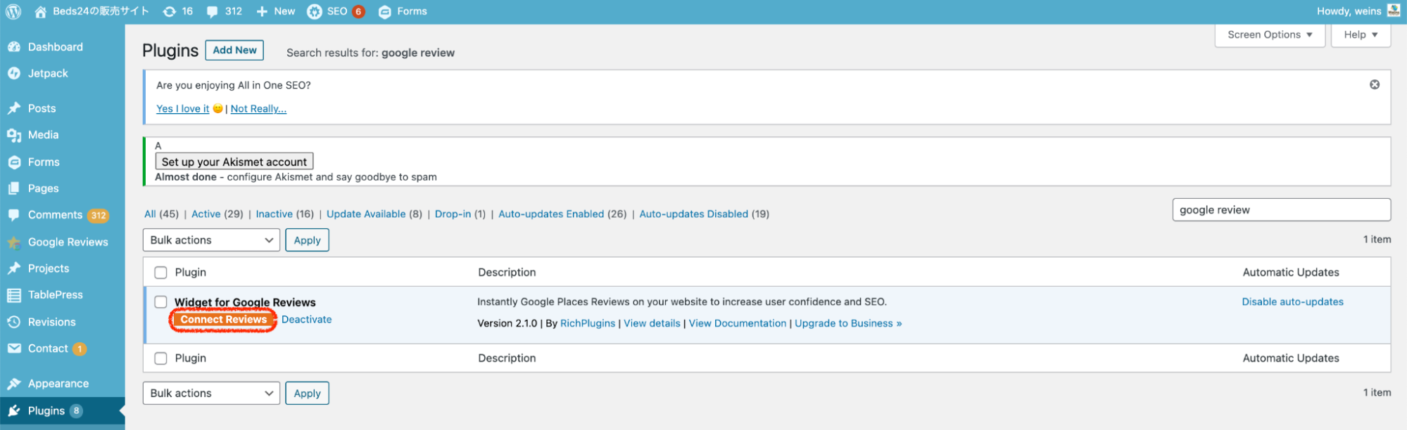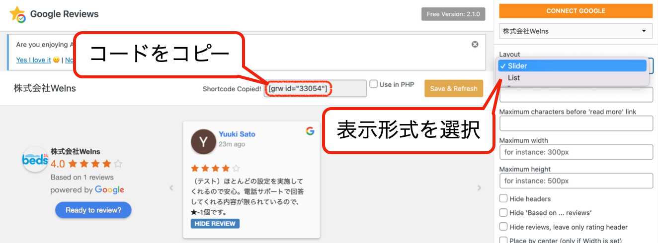 ①『Connect Reviews』をクリック