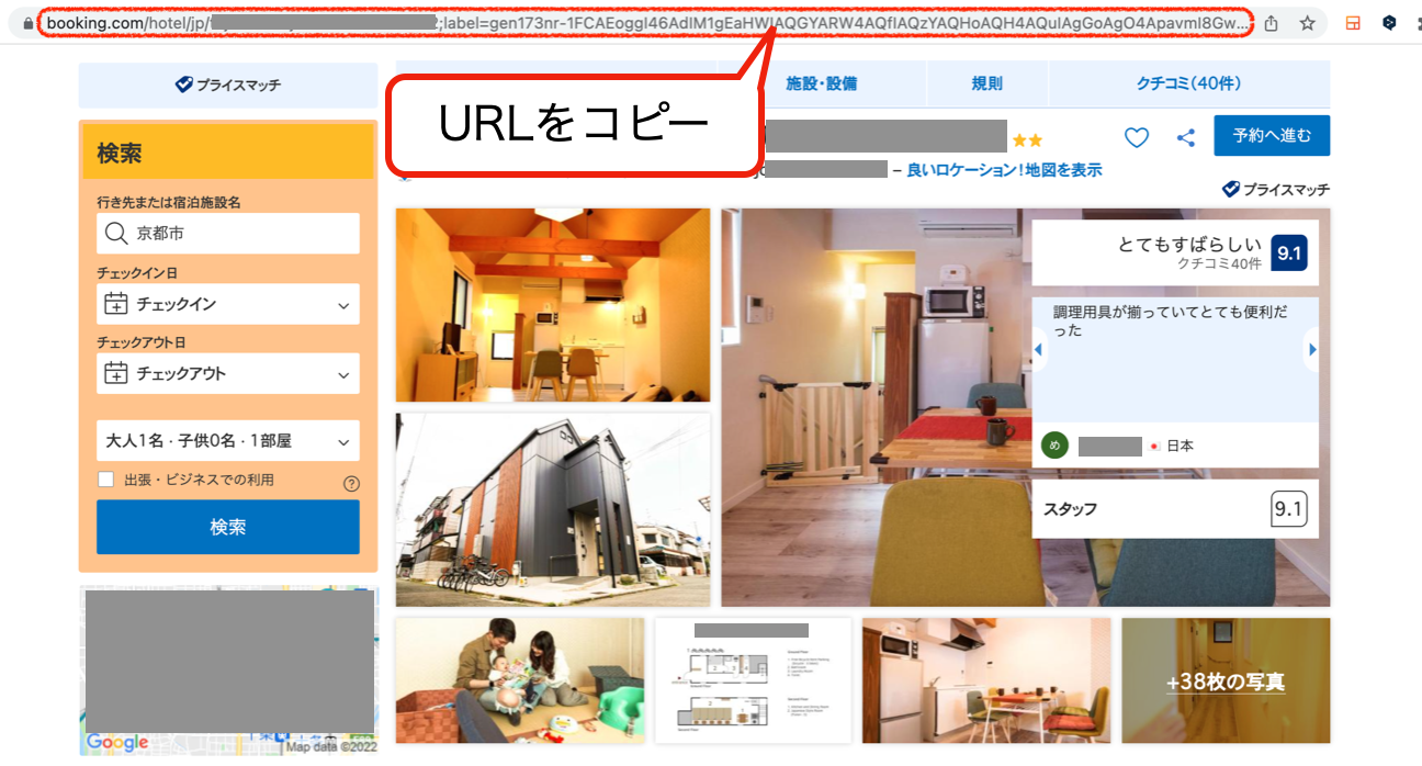①Booking.com予約ページのURLをコピー