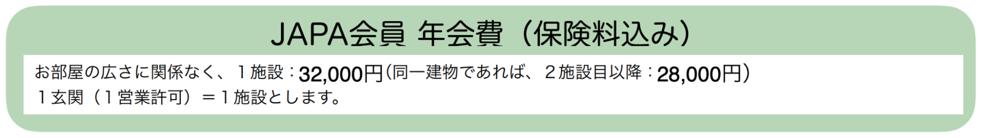 JAPAの年会費は、1施設 ¥32,000(2施設目以降 ¥28,000)です。