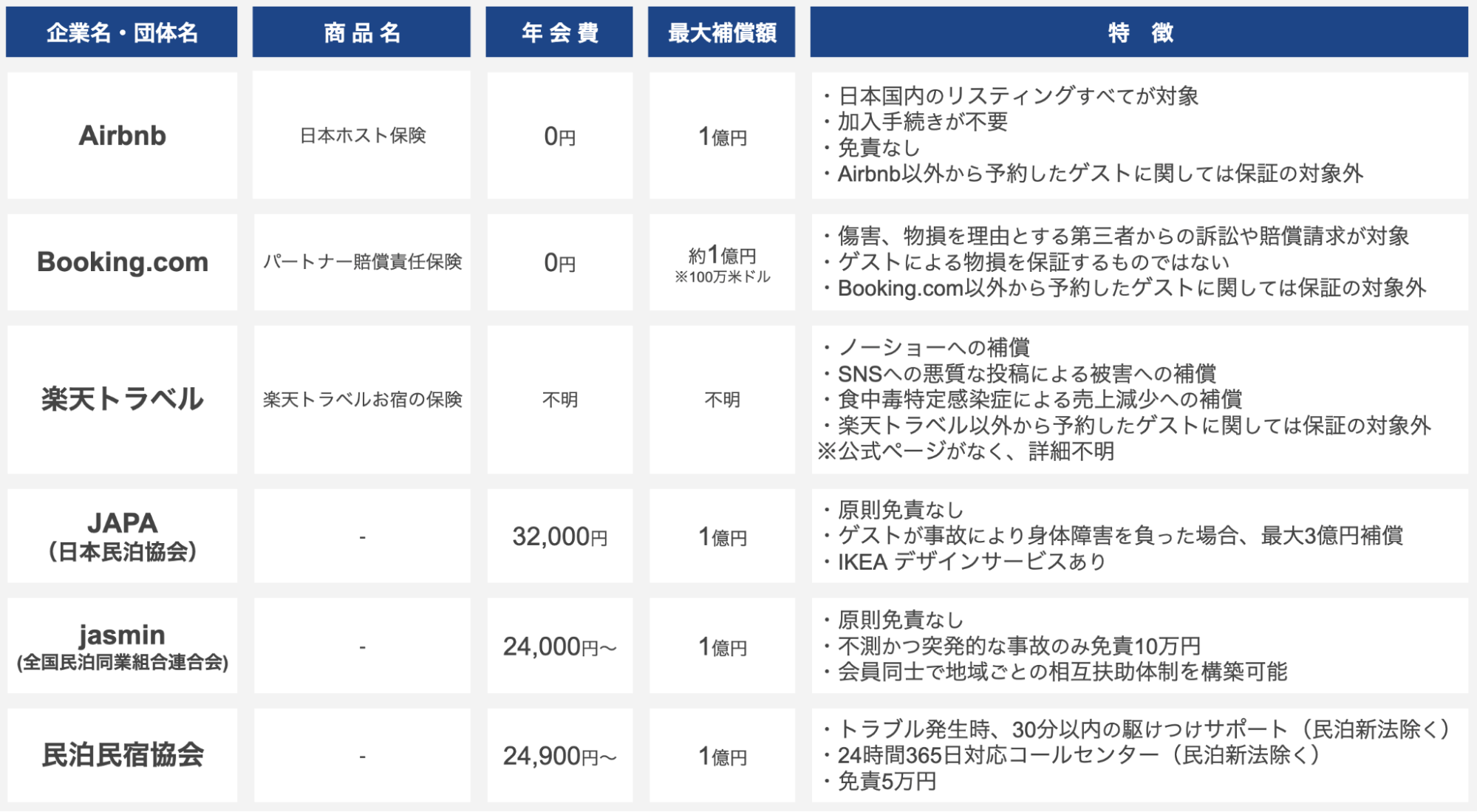 下記OTAの保険は、該当OTAから予約したゲストの滞在のみが対象です。