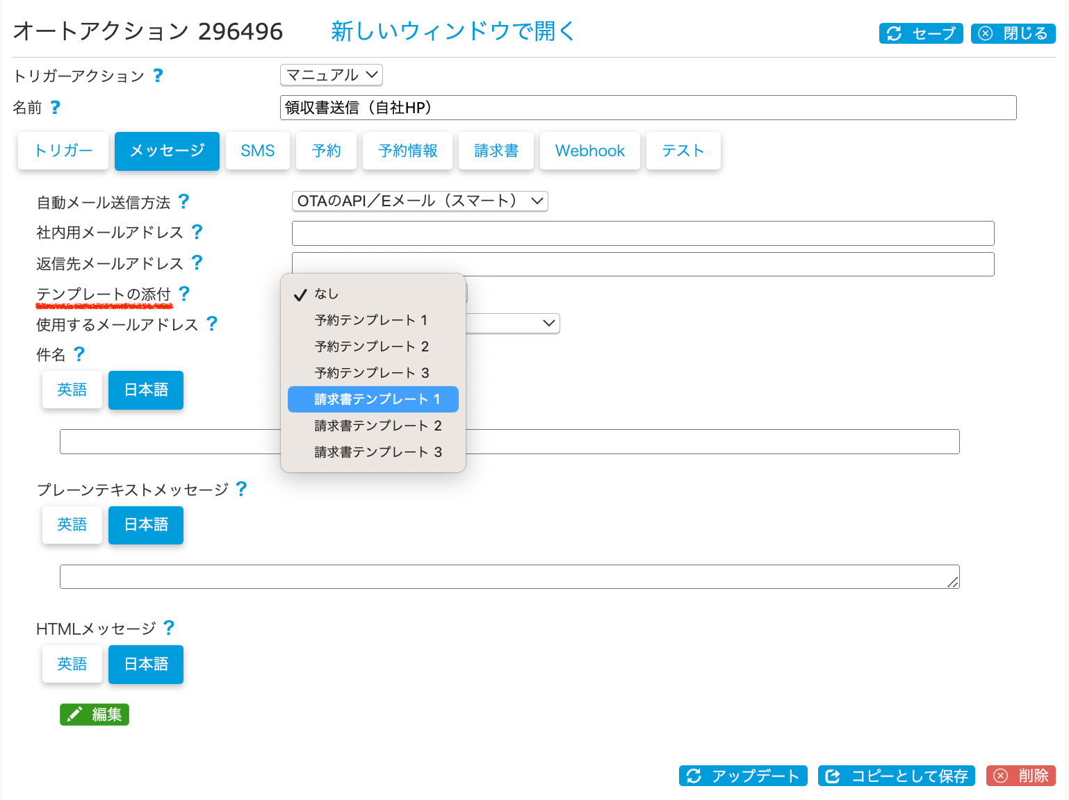 以上で、自動送信メールに領収書のPDFが添付されます。