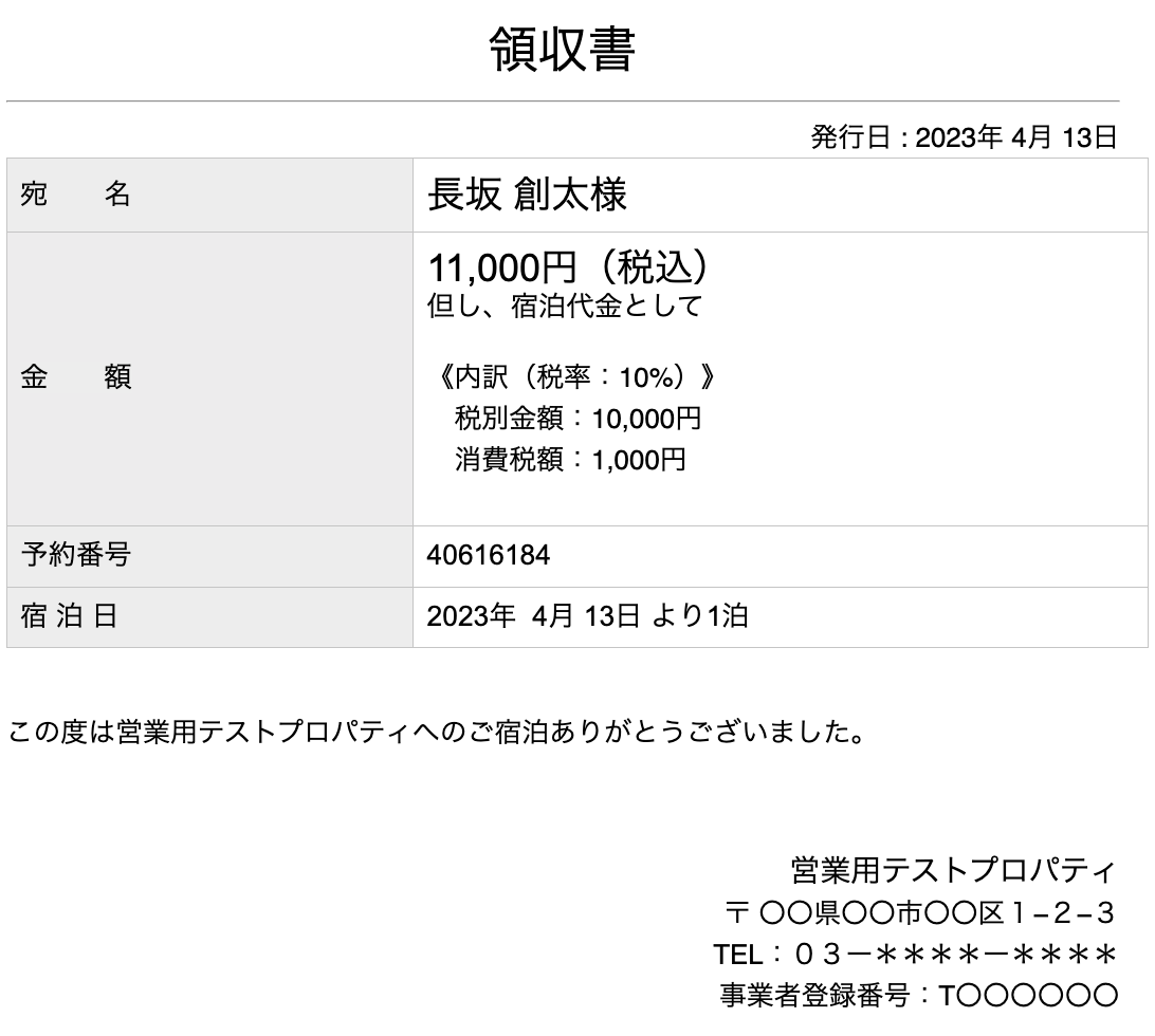 ※OTAが決済を代行した予約の領収書は、OTAが発行します。