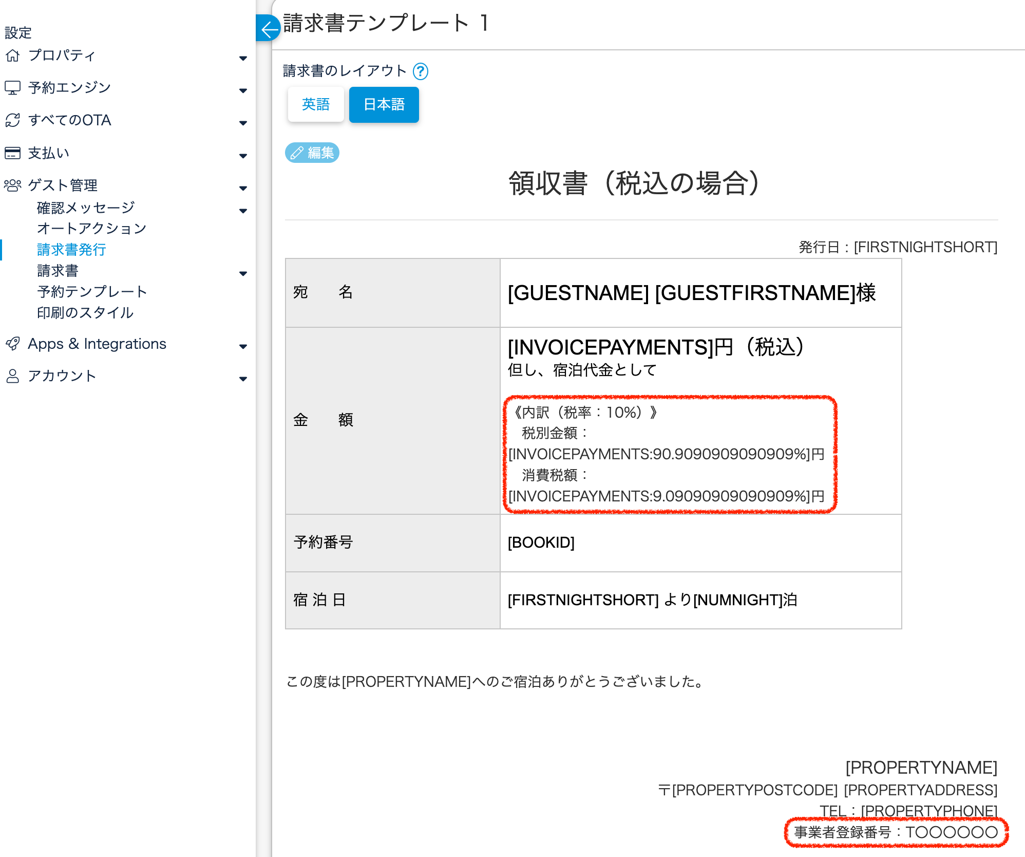 インボイス制度に適応した領収書は、Beds24で自動作成しましょう。